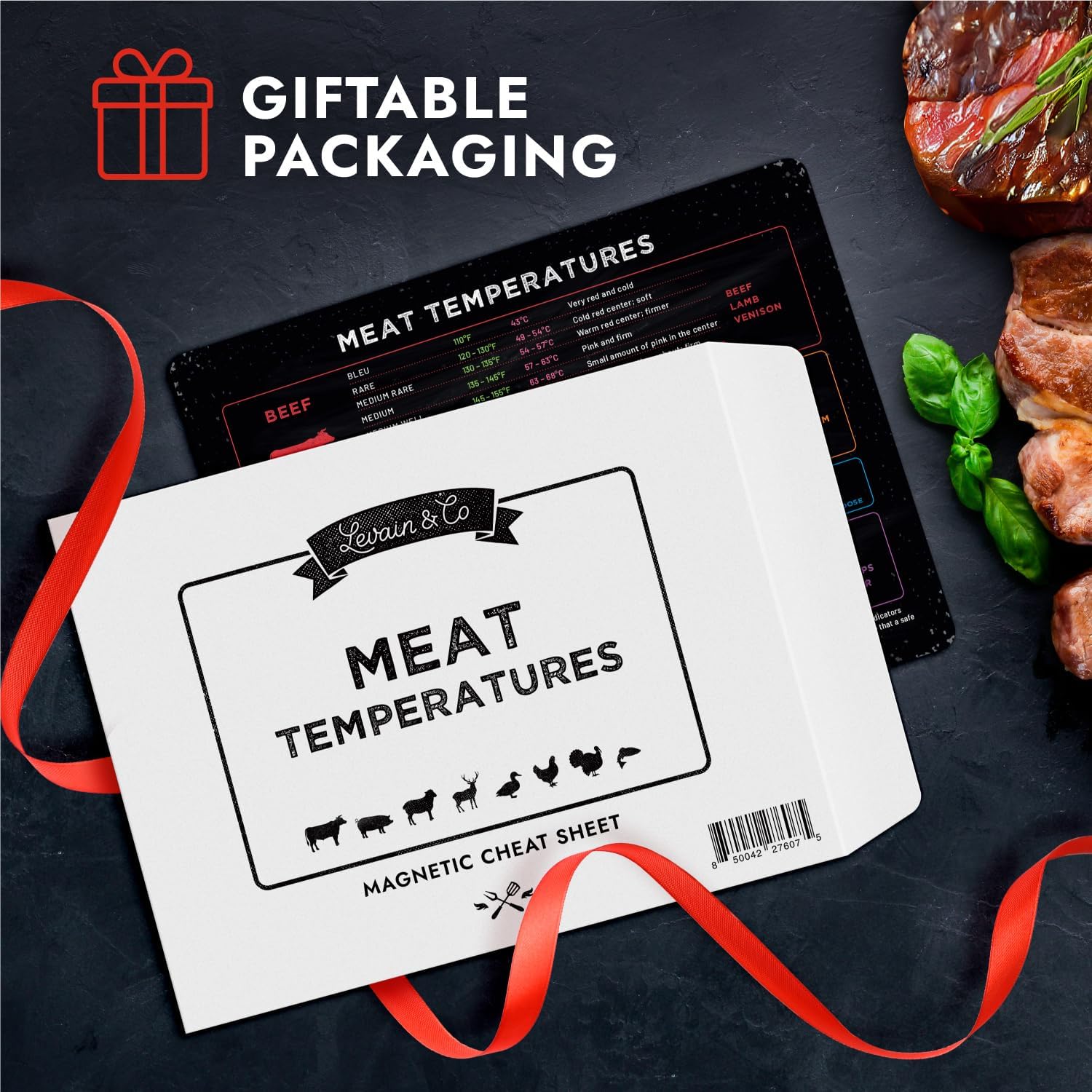 ENHANCED FOOD SAFETY — With a meat cooking temperature chart, you get a crystal clear roadmap to culinary safety. These cooking tools help make sure you don’t serve undercooked, potentially harmful dishes to you, your family or your guests. Hit that magic steak temperature with the help of your meat doneness chart magnet and unlock a flavor explosion