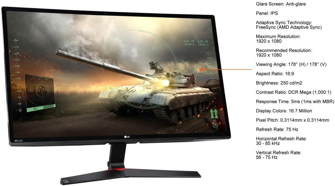LG 27MP59G-P Gaming Monitor 27” Full HD (1920×1080) IPS Display, 1ms Blur Reduction, AMD FreeSync, On Screen Control – Black