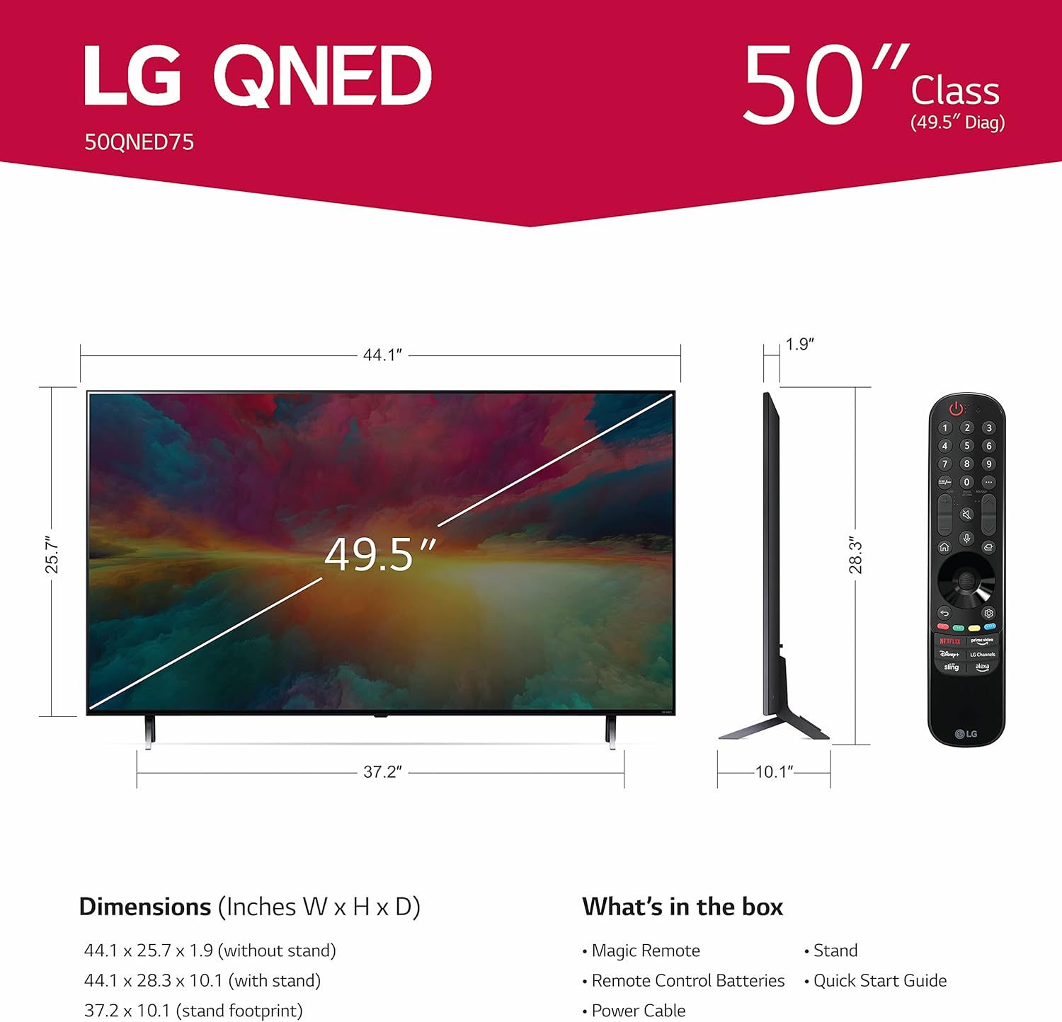 LG QNED75 Series 50-Inch Class QNED Mini-LED Smart TV 50QNED75URA, 2023 – AI-Powered 4K TV, Alexa Built-in, Ashed Blue