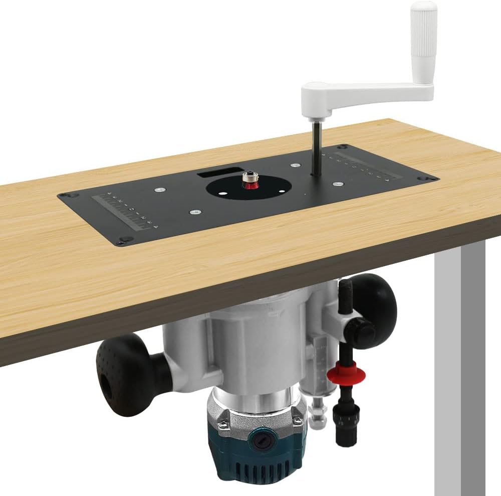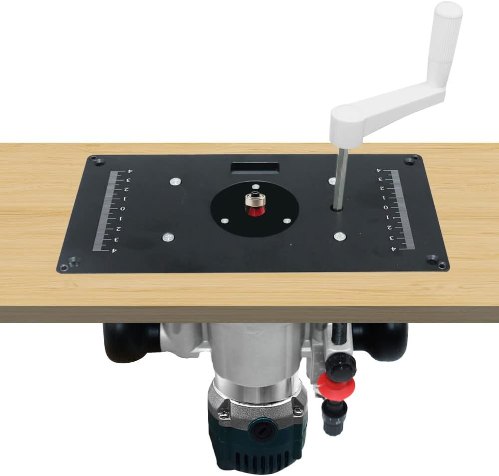 Lift Table, Router Lift Table Aluminum Insert Plate Lifting Platform Stand Woodworking Benches 37mm Lifting for 64-65.5mm Diameter Motors Engraving Trimming Machine, With Flip Board, Black