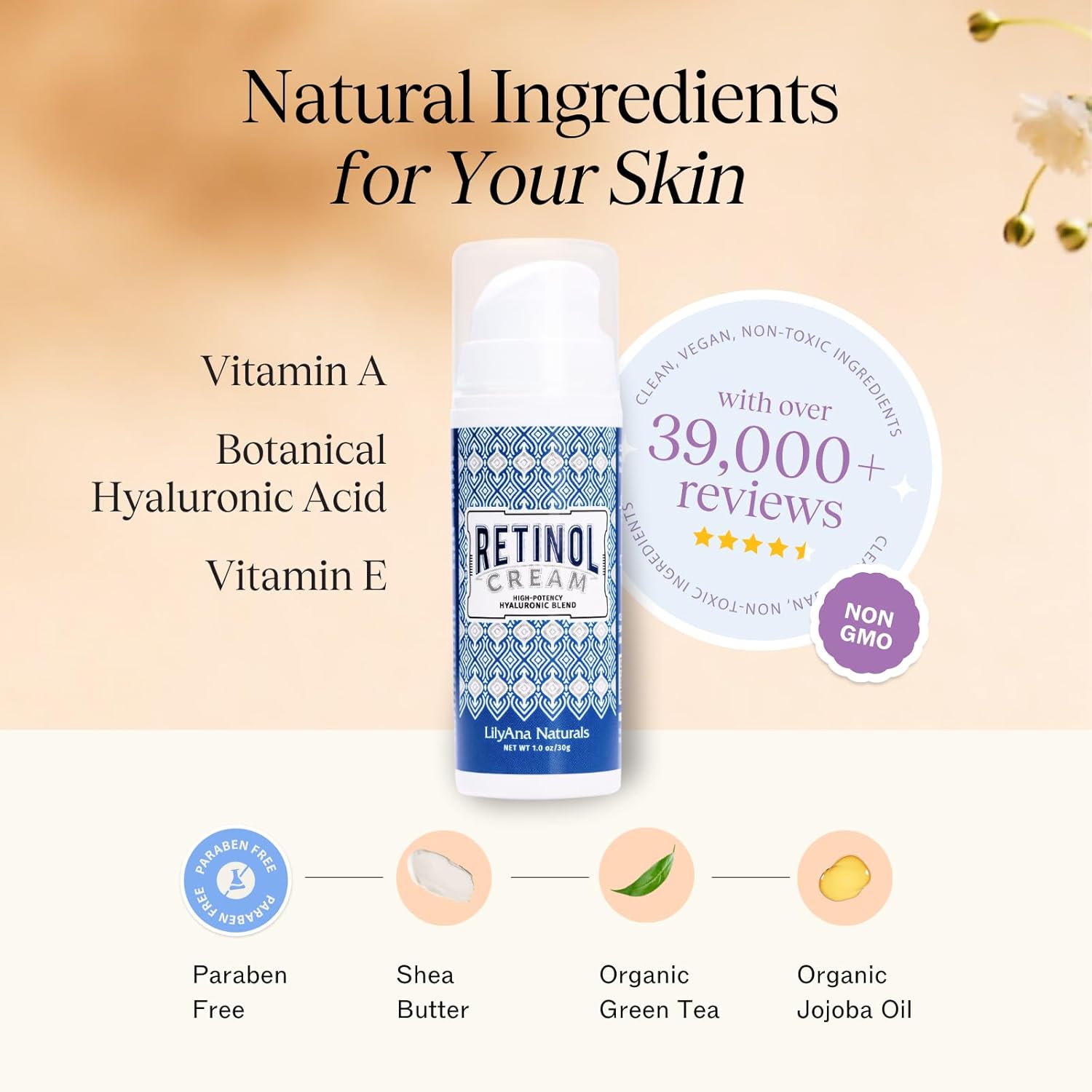 LilyAna Naturals Retinol Cream – Made in USA, Anti Aging Moisturizer for Face and Neck,Wrinkle, Retinol Complex – 1.7oz
