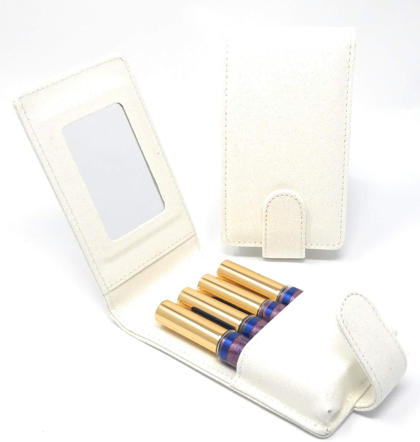 LipSense Makeup Lipstick White Sparkle Case with Mirror for Purse by CariWare | Cosmetic Pouch with Mirror – Fits Lip Sense Gloss Glossy and Most Popular Brands of Liquid Long Lipstick