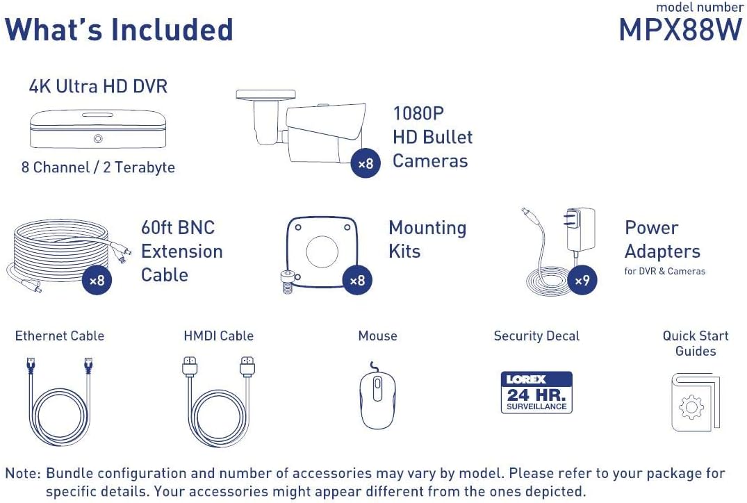 Own a reliable and cost effective professional surveillance solution ideal for your home or business with this security camera system from Lorex. Experience a heightened level of detail and clarity in your surveillance footage thanks to top-quality high definition video. This web exclusive security system features our 8-channel D841 4K Ultra HD digital video recorder (DVR) and eight weatherproof 1080p HD security cameras with excellent long range night vision capability.