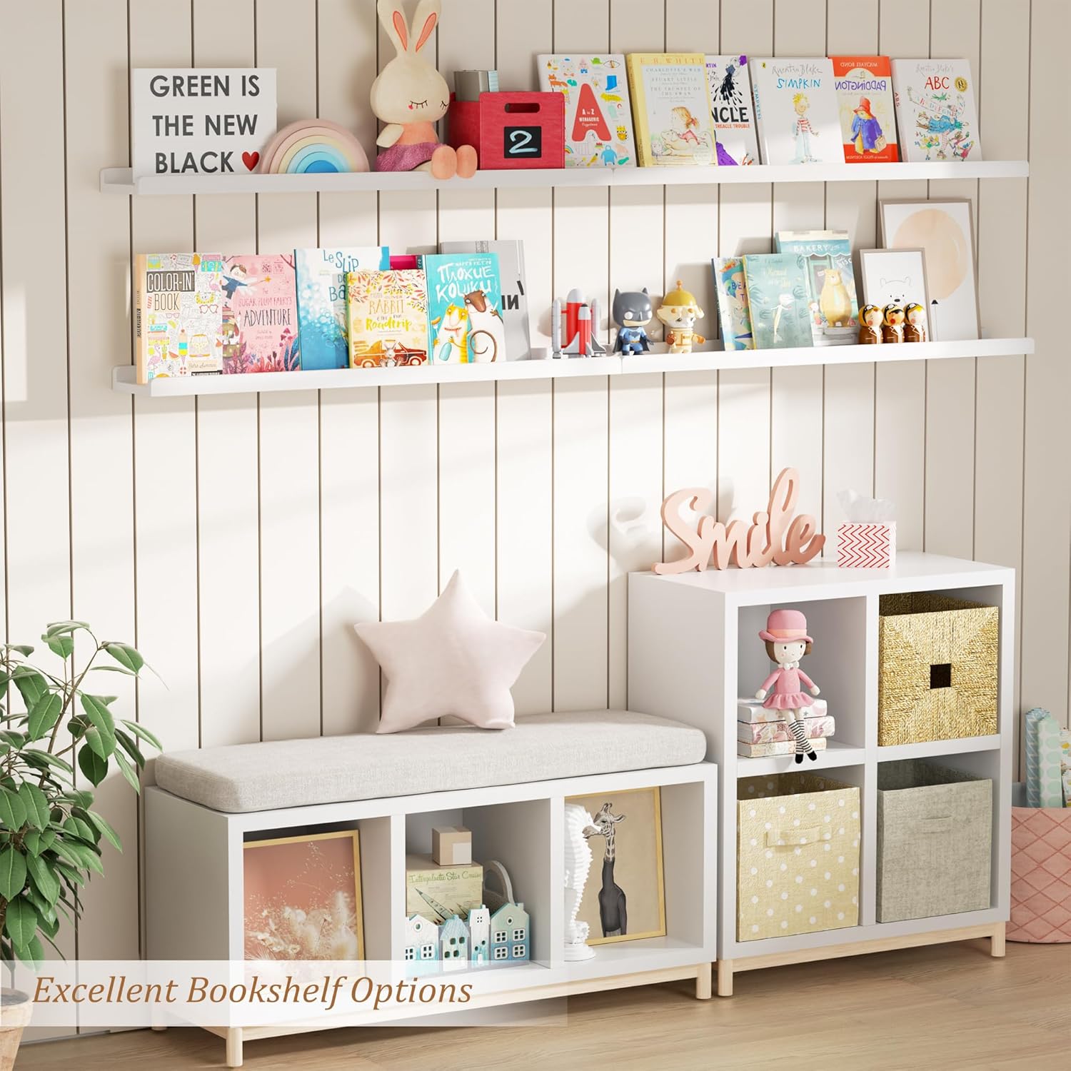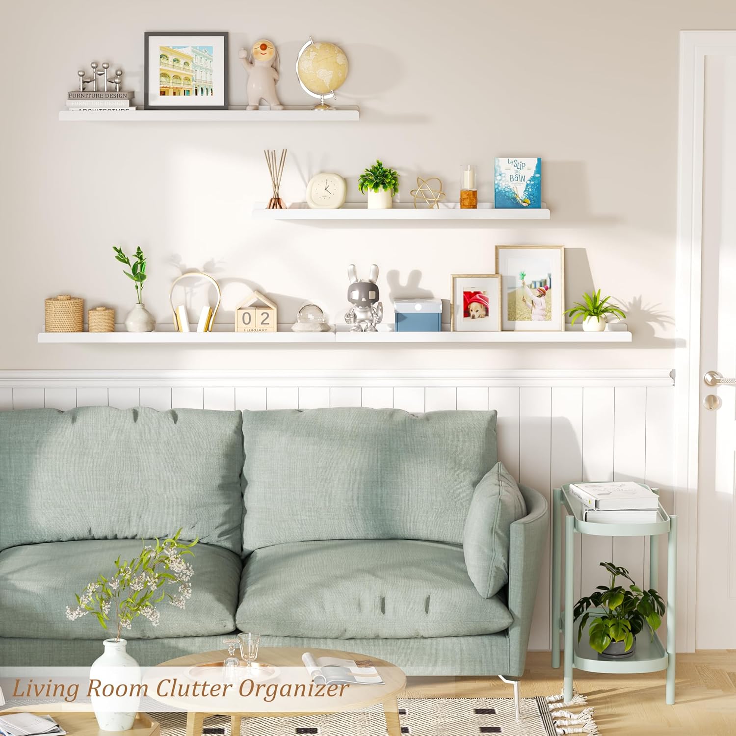 Slide-proof Protective Ledge – Each wall shelf is designed with a protective ledge in the front. This makes them more convenient, and you can install them as your bathroom, bedroom, living room, kitchen, laundry room shelves to place your books, plants, trophies, and more.