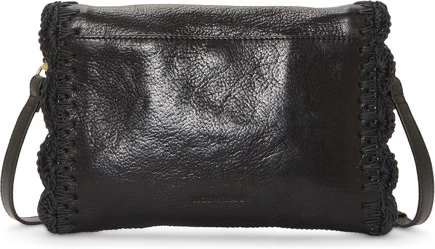 The fashionable Toni crossbody has beautiful macrame trim. Wear it as a clutch or use the strap to wear as a crossbody. The exterior features 1 back slip pocket and the interior features media and credit card pockets.