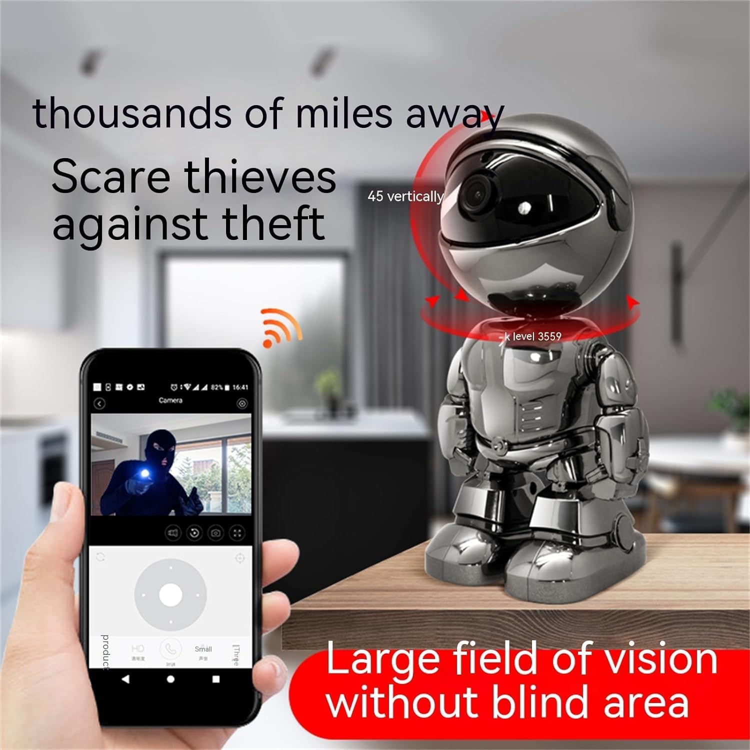 【Stylish Robot Camera】Our robot camera blends technology with . With its cool electroplated metal color, it can serve as a unique decoration and a high-tech security camera, offering remote mobile phone interaction for a seamless user experience.