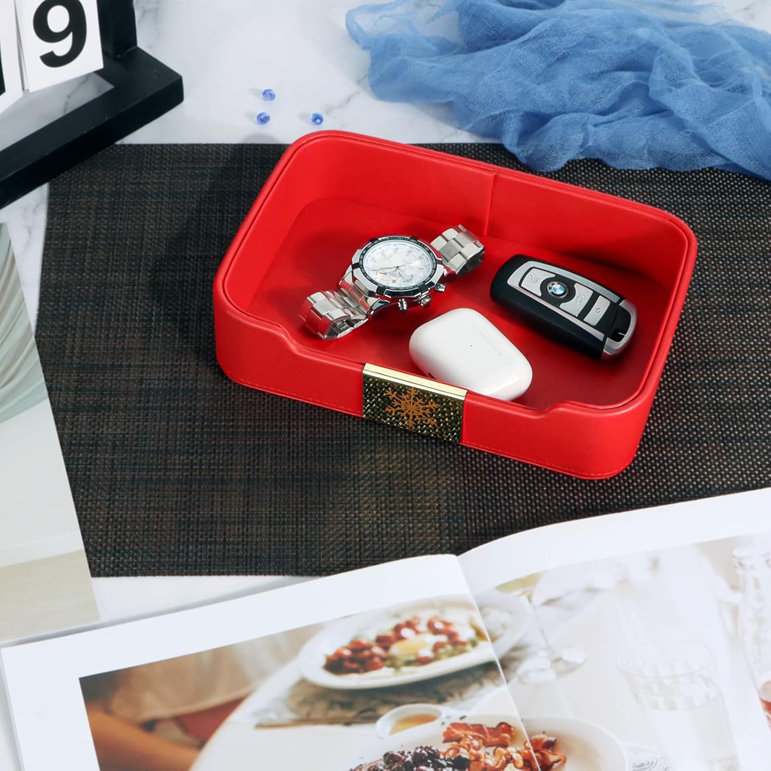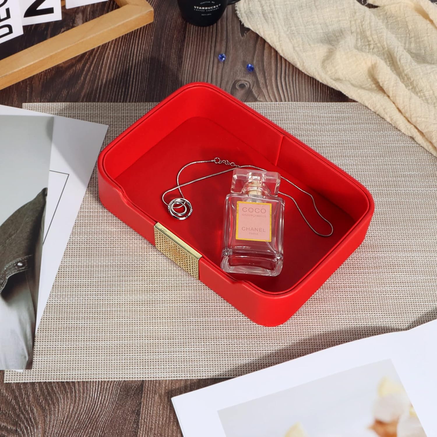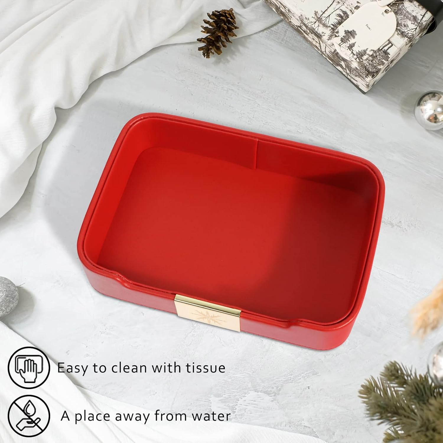 【Special Craft】The leather used in this tray is treated with a special process to make it soft and smooth. This ensures that your items will not be scratched or damaged when placed in the tray.