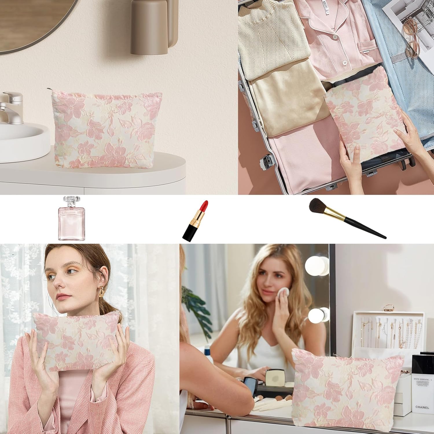 LYDZTION Pink Flower Makeup Bag Cosmetic Bag for Women,Large Capacity Canvas Makeup Bags Travel Toiletry Bag Accessories Organizer