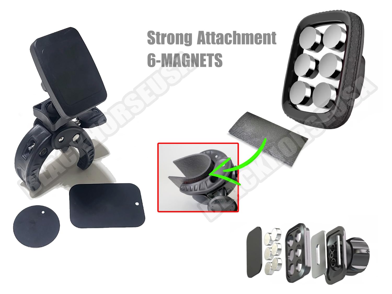 – for Android phones – 6 powerful magnets (instead of 4) to hold your phone with included metal tabs