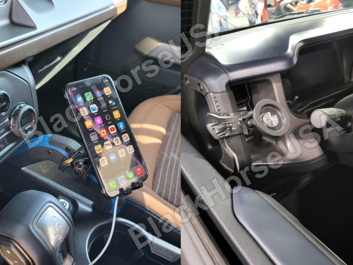 【Secure offroad】Cell phone mount / holder for the center console on your 2021 2022 2023 2024 Ford Bronco. It mounts with a claw, where claw’s arm are covered with silicone to keep your surface nice and clean without any type of imprint.
