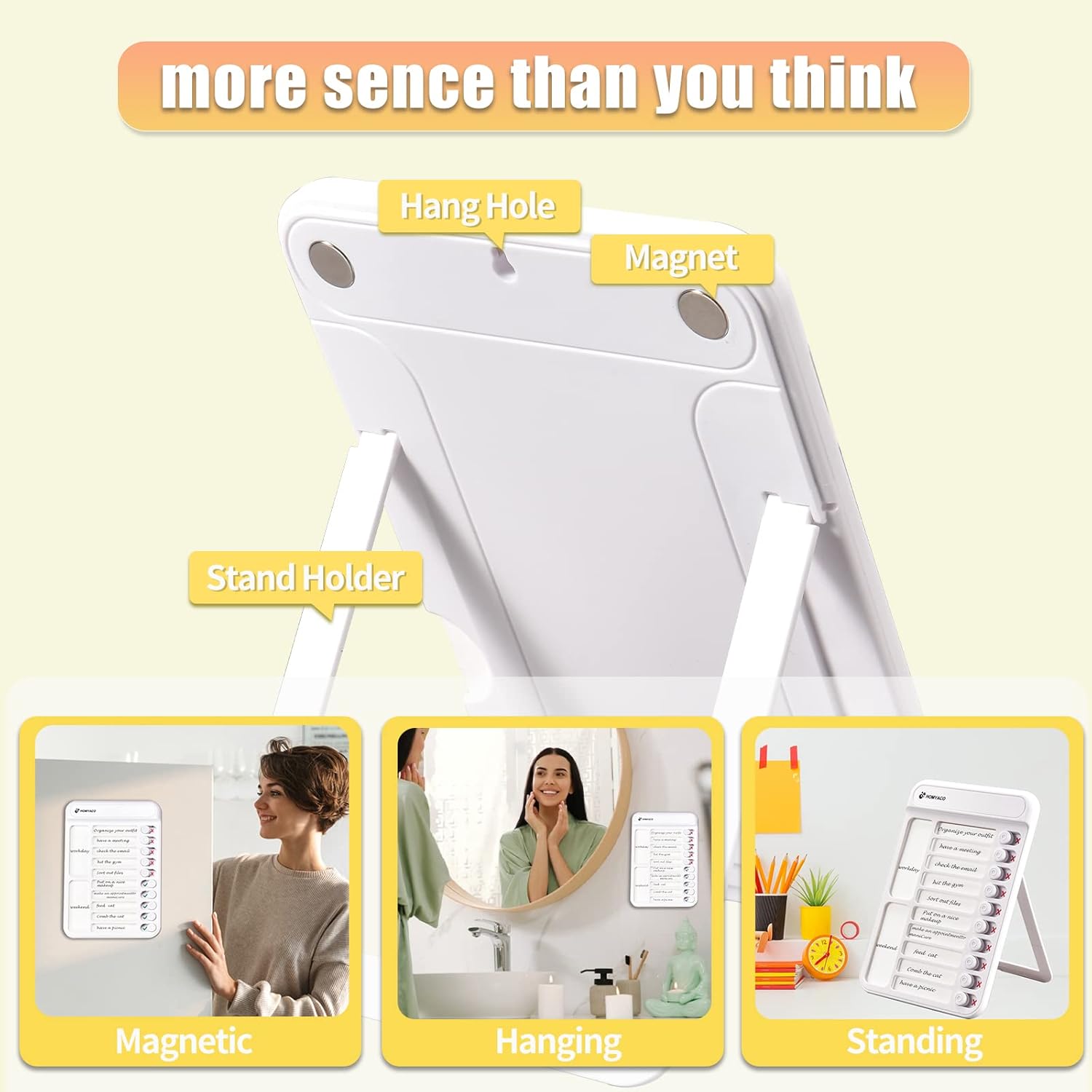 Multi-Function: Magnetic chore chart is a versatile tool that offers multiple fixation modes, including brackets, hanging holes, and magnets. This allows it to be easily placed on a variety of surfaces, including fridges, walls, and tables. The kids chore chart also serves multiple purposes, such as a visual schedule and responsibility chart for kids, a bedtime routine chart for toddlers, an ahdh planner for adults, and magnetic chore chart for refrigerator. It is an ideal tool.
