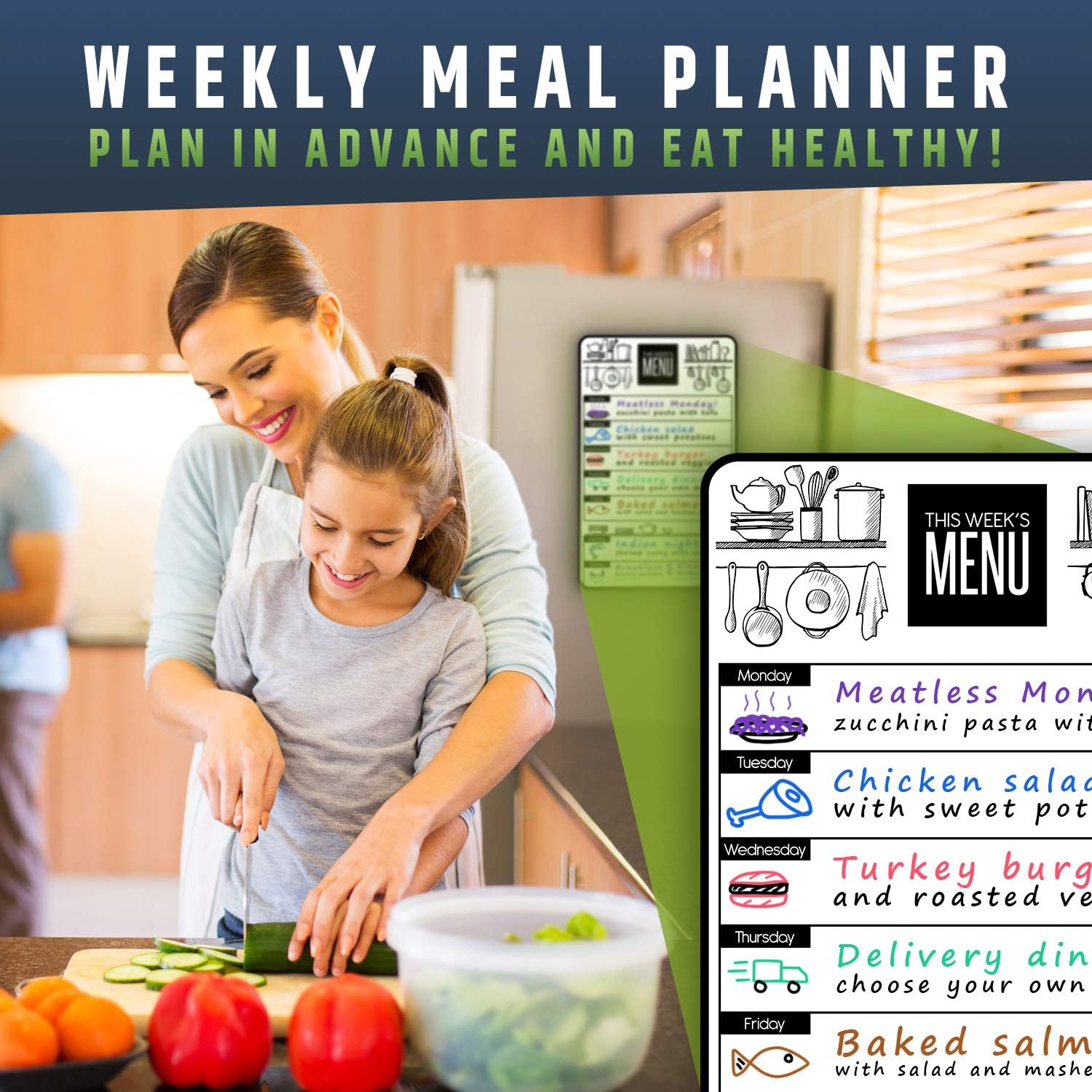 BRING BACK THE ANTICIPATION YOUR KIDS LOVE – Let your children anticipate the weekly meals you have planned for them! Use the menu board as a dinner or lunch planner and as a breakfast planner for weekends. Use one of your 8 beautiful multicolor markers for every different meal.