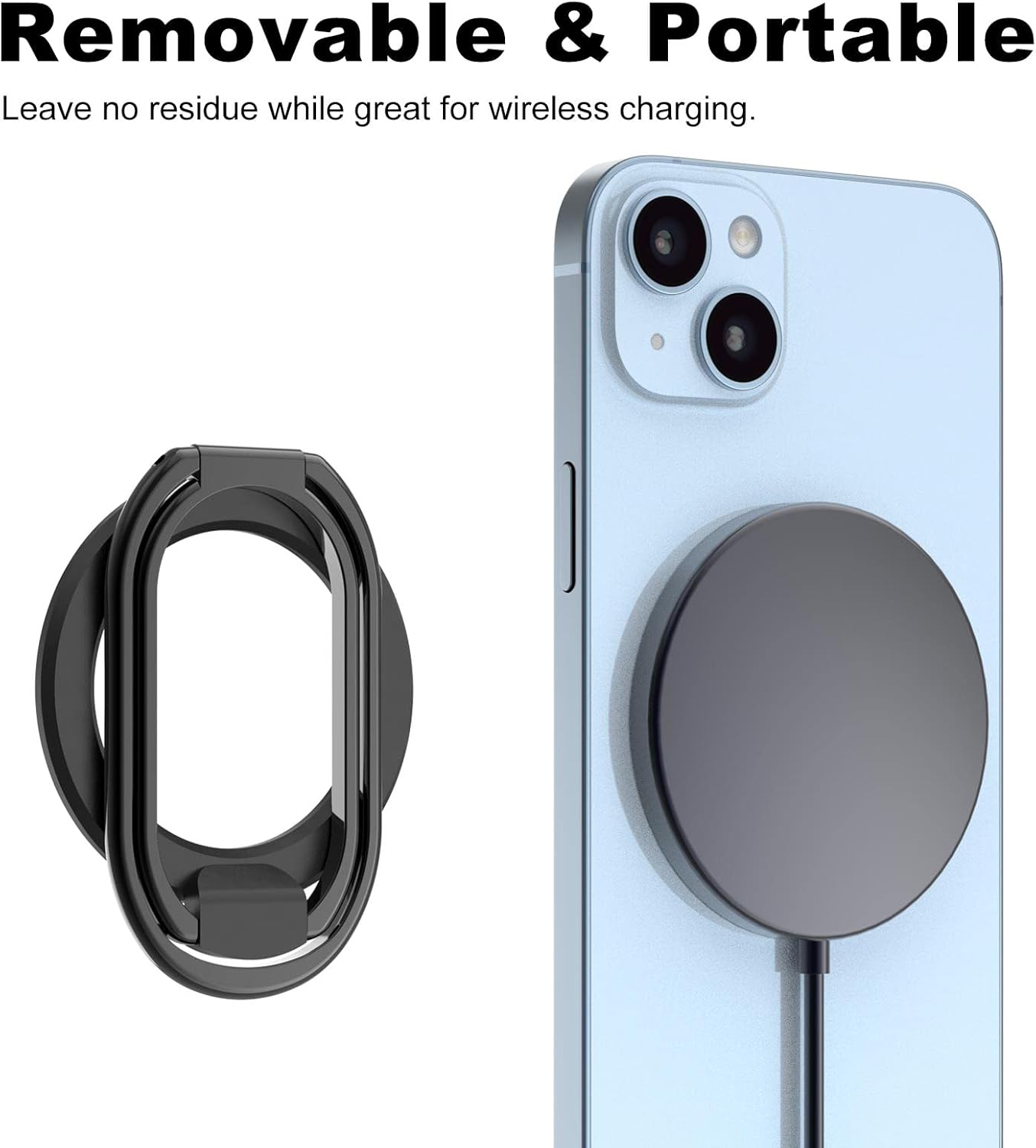 Removable and Convenient: Unlike traditional magnetic phone ring holders, our phone grip is detachable, allowing you to remove it easily while wireless charging without leaving any sticky residues or adhesive tapes behind.