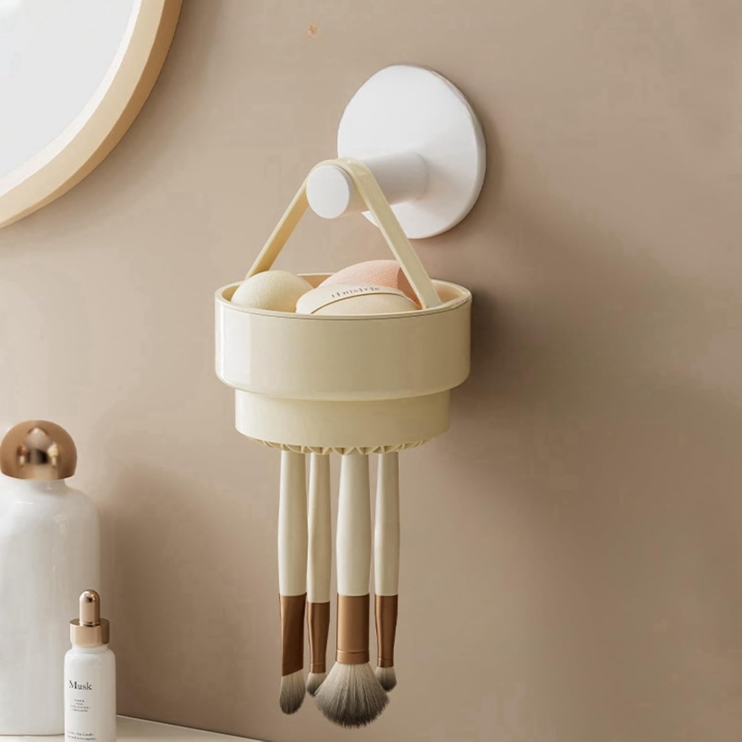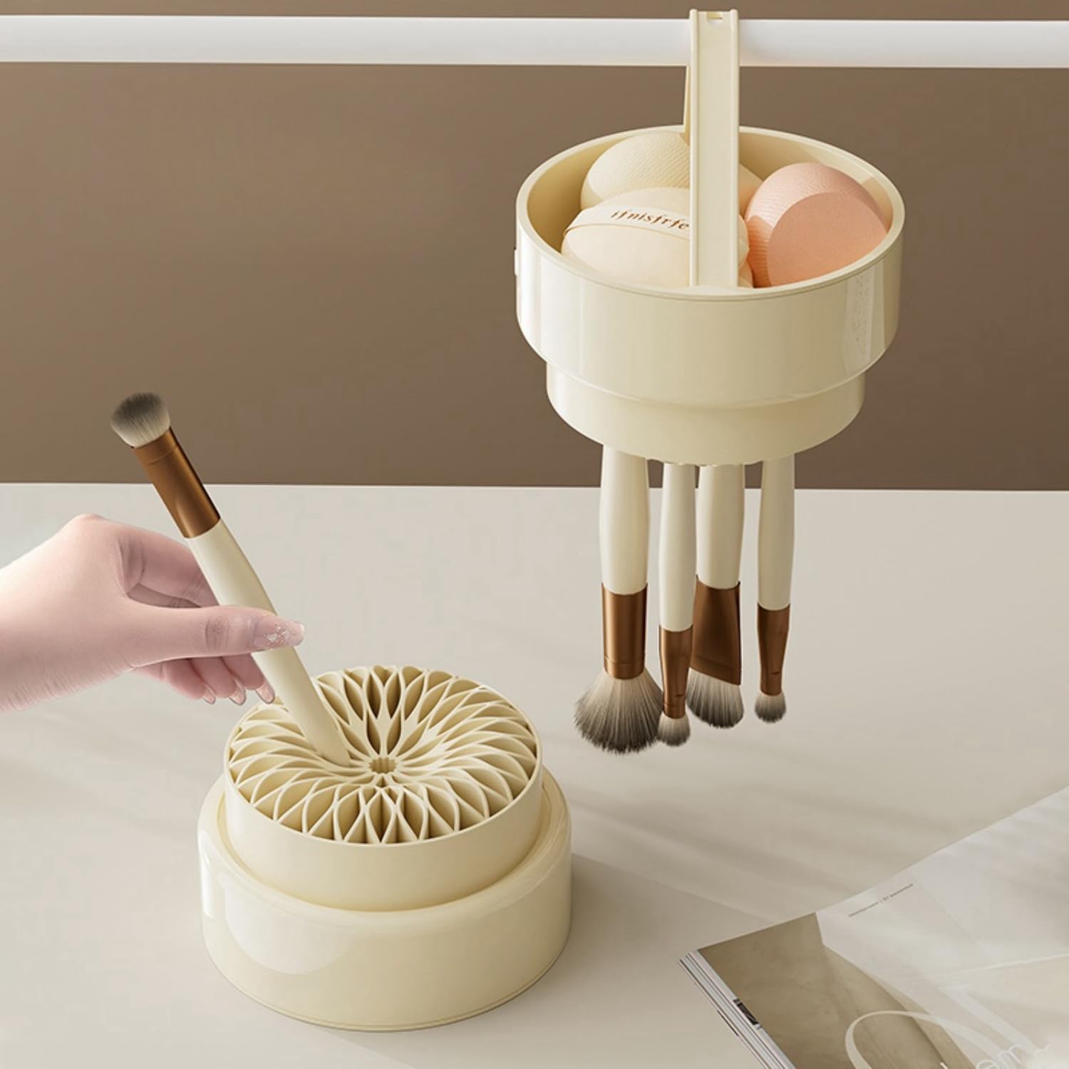 Makeup Brush Cleaner 3 in 1,Silicone Makeup Brushes Organizer with Cleaner Bowl and Brush Drying Holder,Cosmetic tools Cleaning Organizer for Storage & Air Drying (Cream)