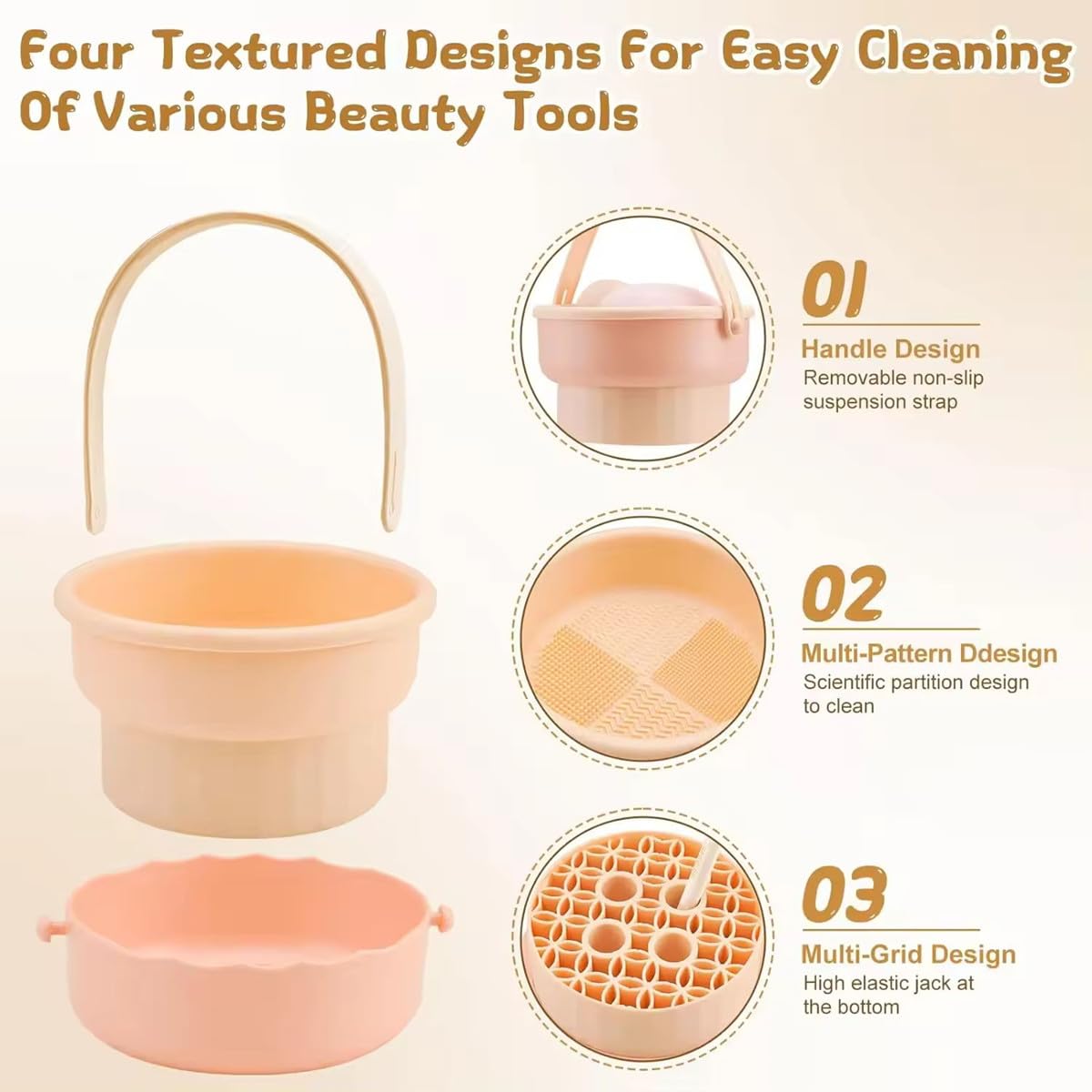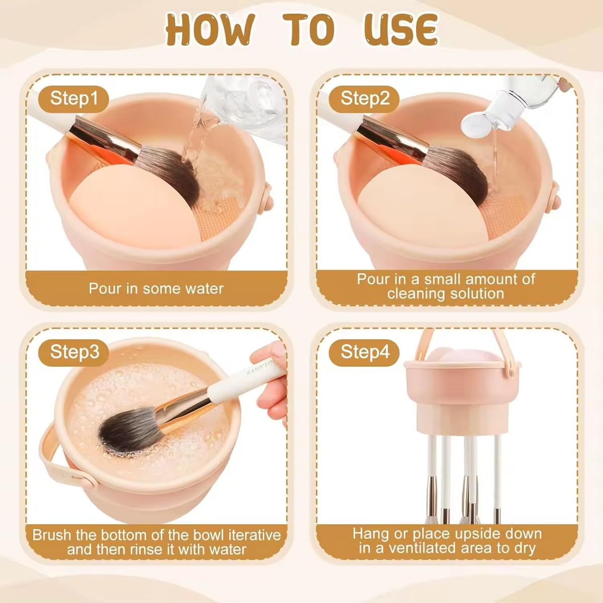 Multi-functional Design: This makeup brush cleaning bowl offers more than just efficient brush cleaning—it’s also a drying rack and storage stand for your makeup tools, providing a convenient 3-in-1 solution. Keep your vanity tidy by effectively cleaning, air-drying, and organizing your makeup brushes, sponges, and puffs.