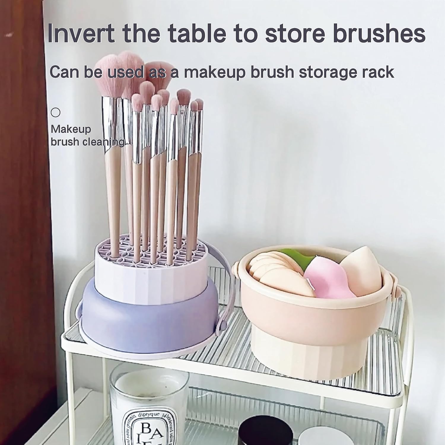 Multi-functional Design: This makeup brush cleaning bowl offers more than just efficient brush cleaning—it’s also a drying rack and storage stand for your makeup tools, providing a convenient 3-in-1 solution. Keep your vanity tidy by effectively cleaning, air-drying, and organizing your makeup brushes, sponges, and puffs