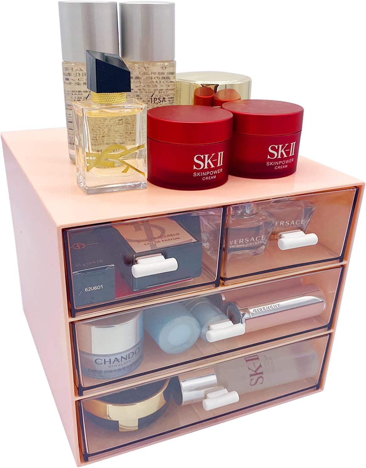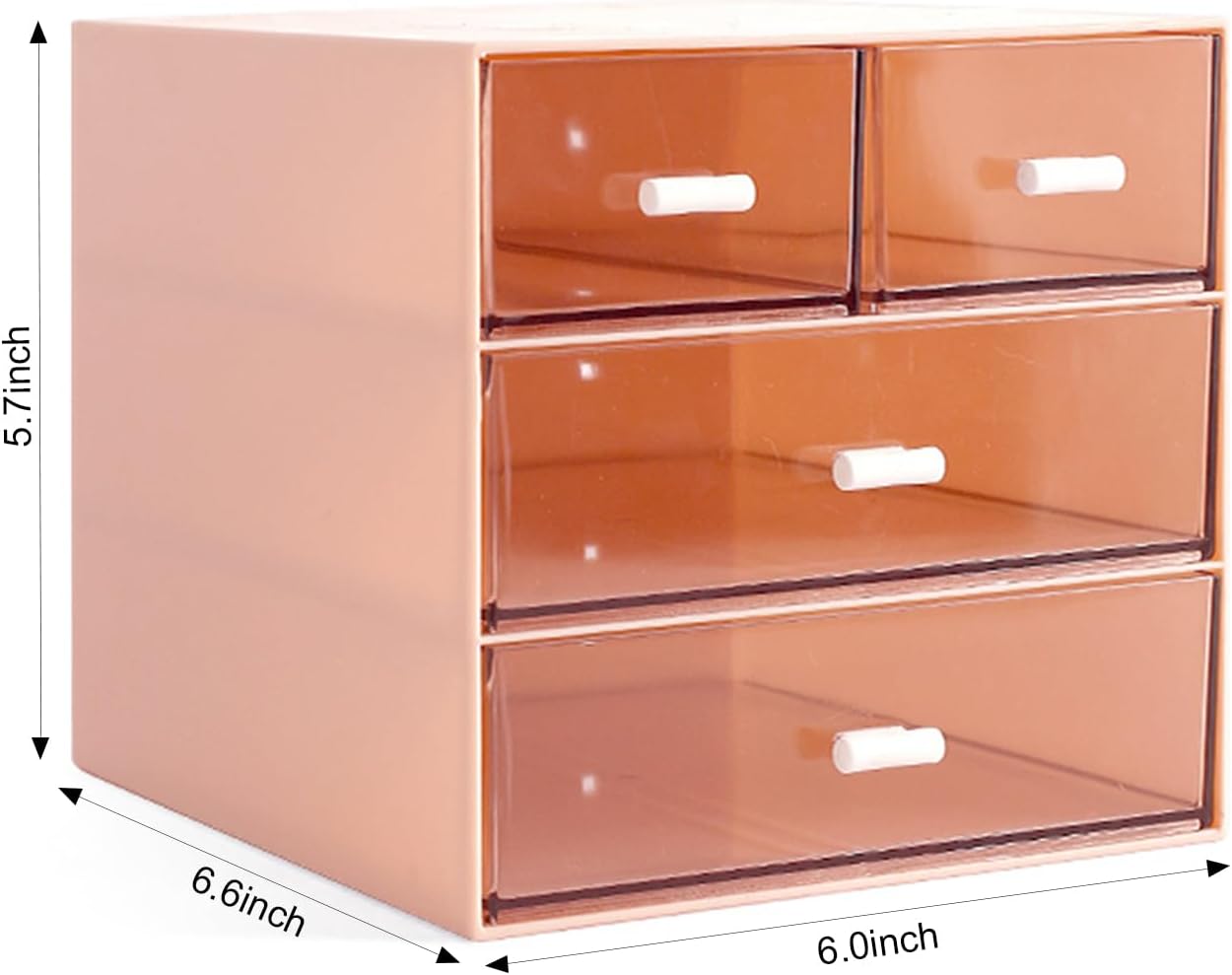 Easily Find What You Need: Makeup Organizer with 4 Transparent Drawers.