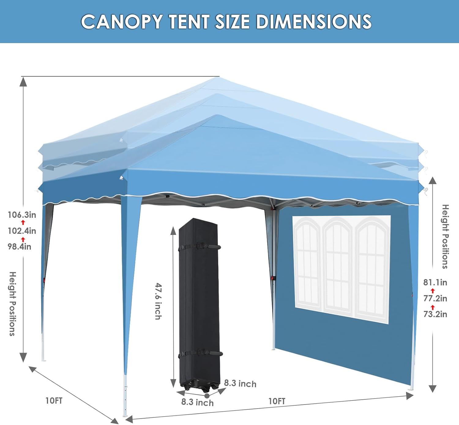 MAMIZO 10x10FT Pop Up Canopy with 4 Sidewalls, Ez Up Commercial -Series Instant Canopy Tent, Outdoor Portable Gazebo with Wheeled Bag, Party Canopies Event Tent for Wedding/Patio/Camping (Blue)