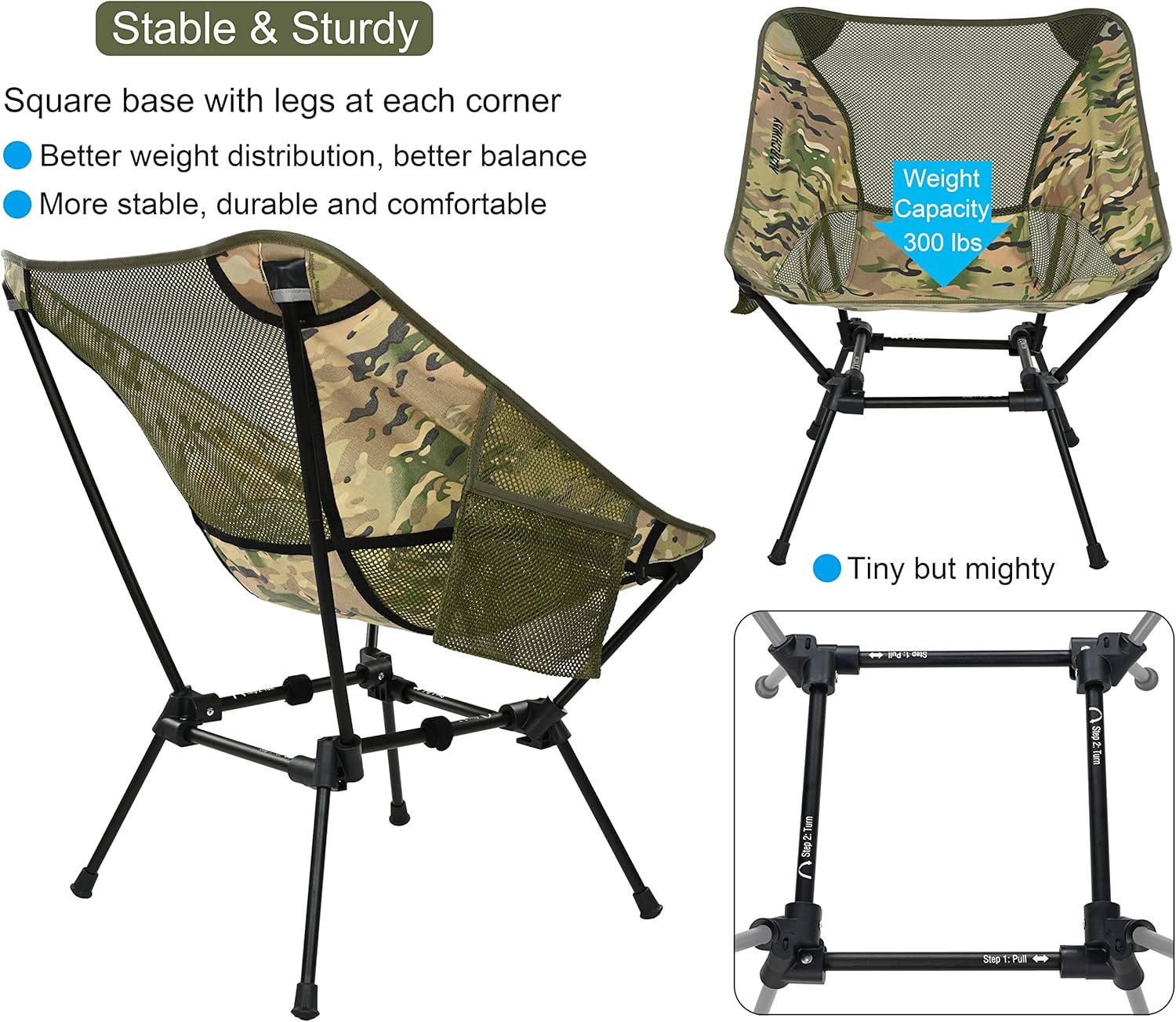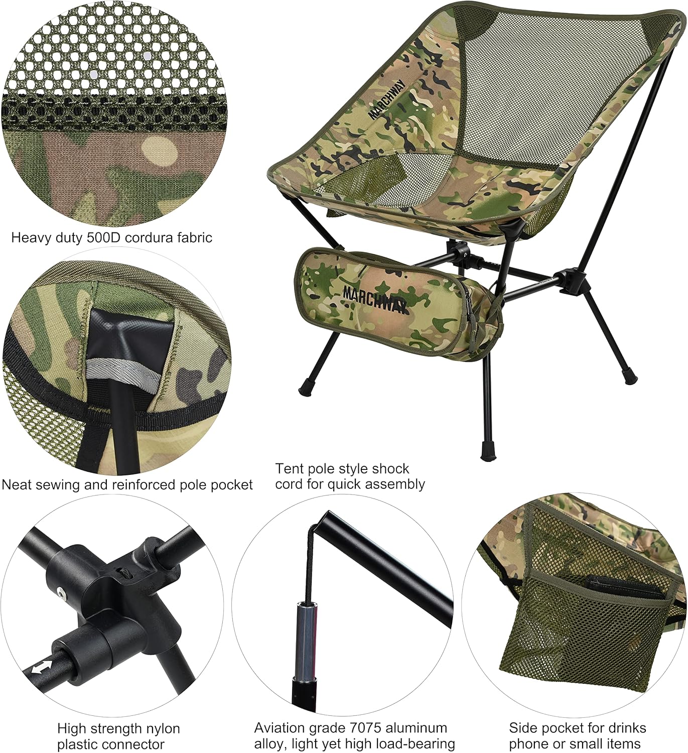MARCHWAY Ultralight Folding Camping Chair, Heavy Duty Portable Compact for Outdoor Camp, Travel, Beach, Picnic, Festival, Hiking, Lightweight Backpacking (Camo)