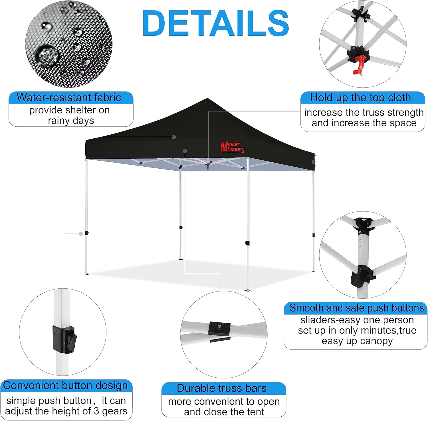 MASTERCANOPY Pop Up Canopy Tent Commercial Grade 10×10 Instant Shelter (Black)