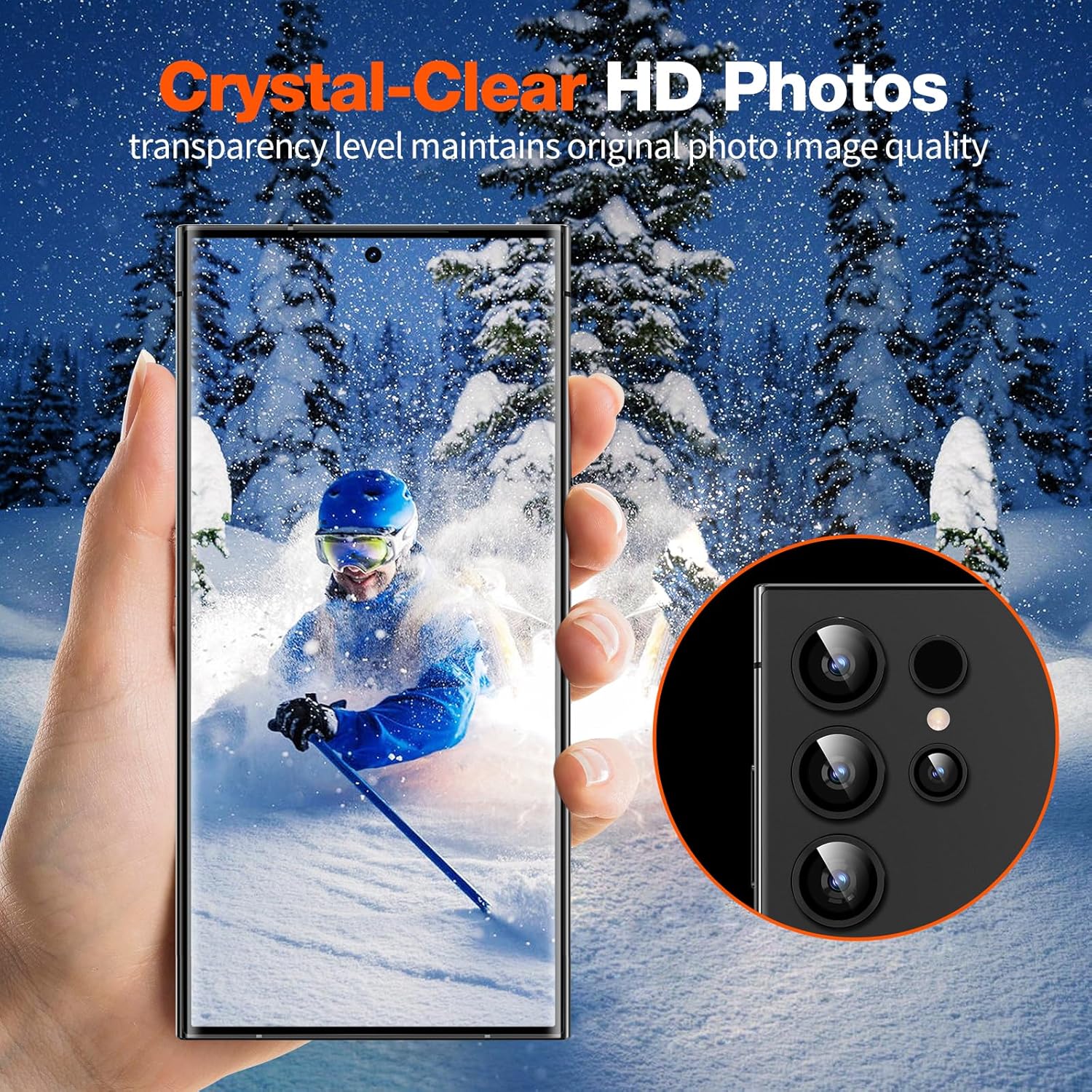 Crystal-Clear Photos: the ultra-high transparency level of these Galaxy S24 Ultra camera protectors maintains the original image quality of your photos as the individual-lens design keeps your flash uncovered and working perfectly