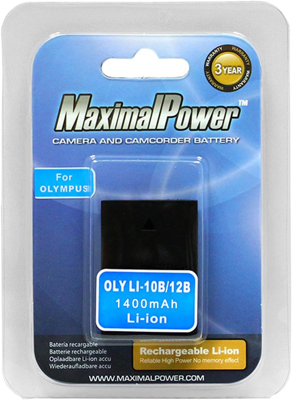 MaximalPower, Sold and Shipped by Amazon Direct, do not buy from any other 3rd party Sellers as products may be counterfeit. The Amazon.com is the only legal distributor for maximalpower. Maximalpower DB OLY LI-10B/12B True 1400mah Lithium-Ion battery for Olympus Stylus Digital 300 / 400 / 500 / 600 / 800 / C-50 Zoom / C-5000 Zoom / C-60 Zoom / C-470 Zoom / C-760 Ultra Zoom / C-765 / C-770 / C-70 Zoom / C-7000 Zoom / D-590 / IR-500. Same as Sanyo DB-L10. Made with Info-Chip, Fully Decoded, Use same as original. Shows time on LCD and charges. Maximalpower is trusted for its true capacities and high reliability, we back our products for 3 years warranty and 1 million us dollar liability insurance. Comes with 2 batteries