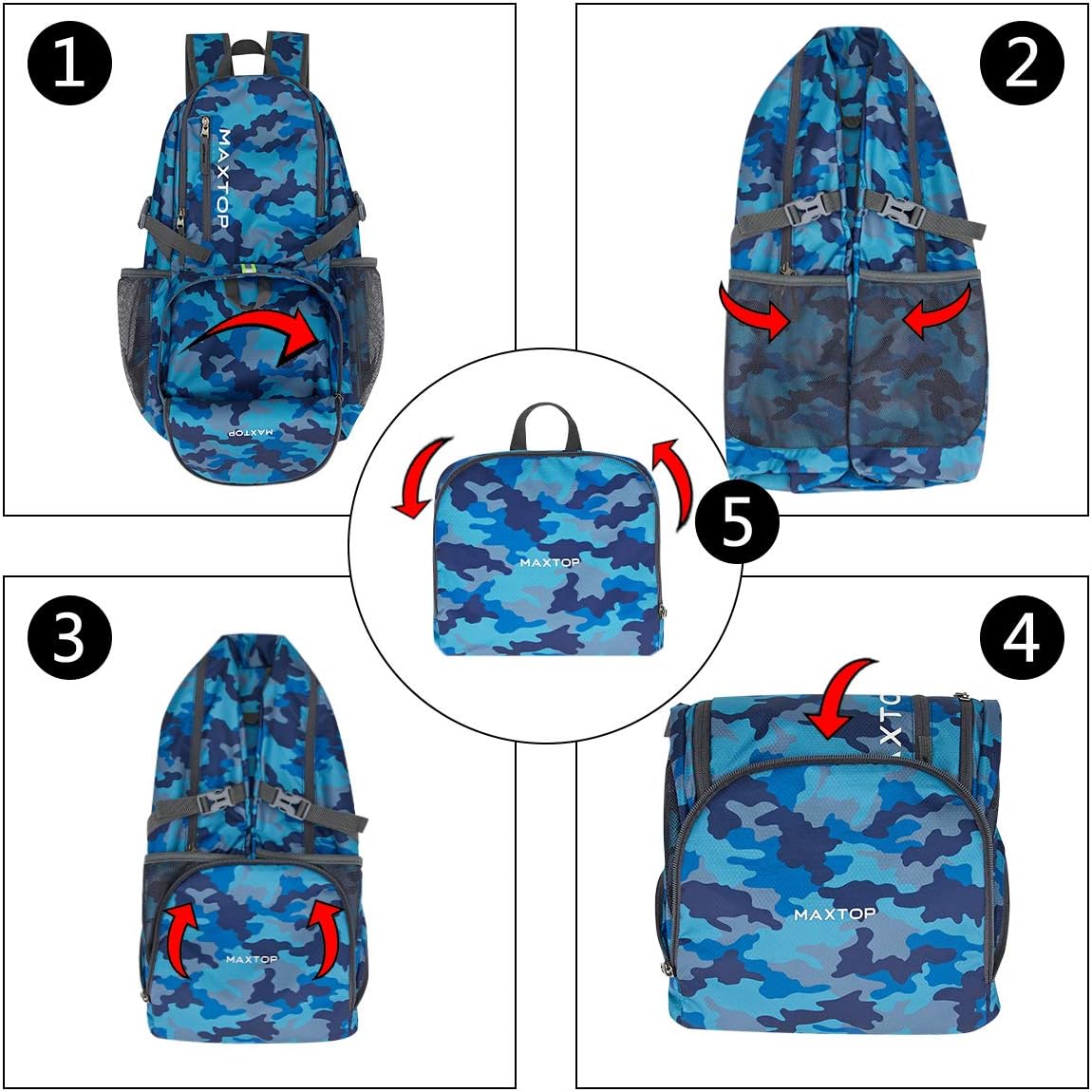 ▶Ultra Lightweight Backpack And Compact (0.9pounds) – When not in use,just fold the foldable backpack into its own zip front pocket (only 5 steps,8*8.5 inch after folding) for easy compact storage,this will become a very small size.and unfold from pocket to backpack within just 10 seconds when you reach your destination.Please note that for ultra-light and foldable purposes, the back of the pack does not contain any padding.