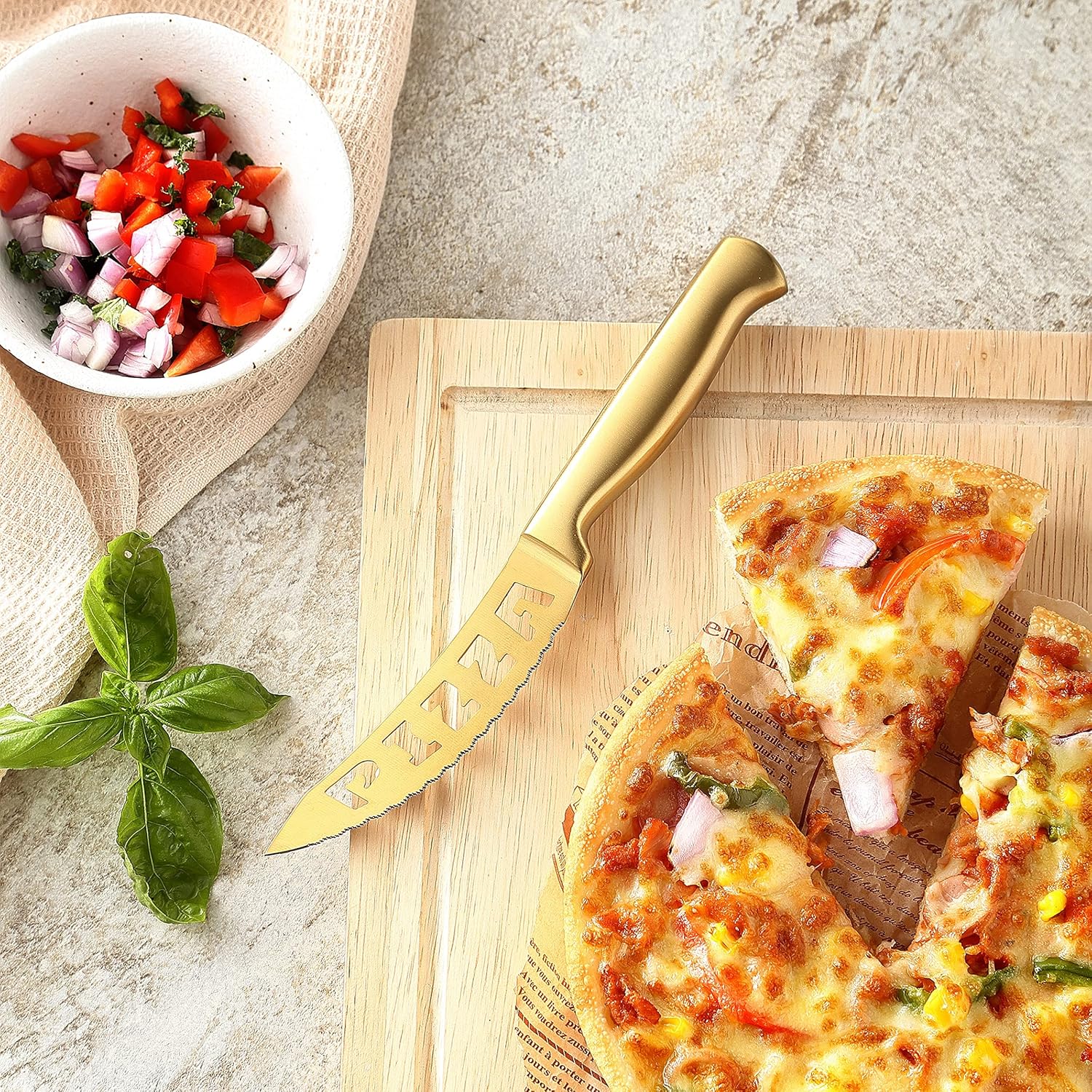 NON-STICK & RUST-RESISTANT – The golden titanium coating prevents the steel from oxidizing, so kitchen knife set will stay non-stick and rust-resistant for years to come. Easy to clean: hand wash for best result.