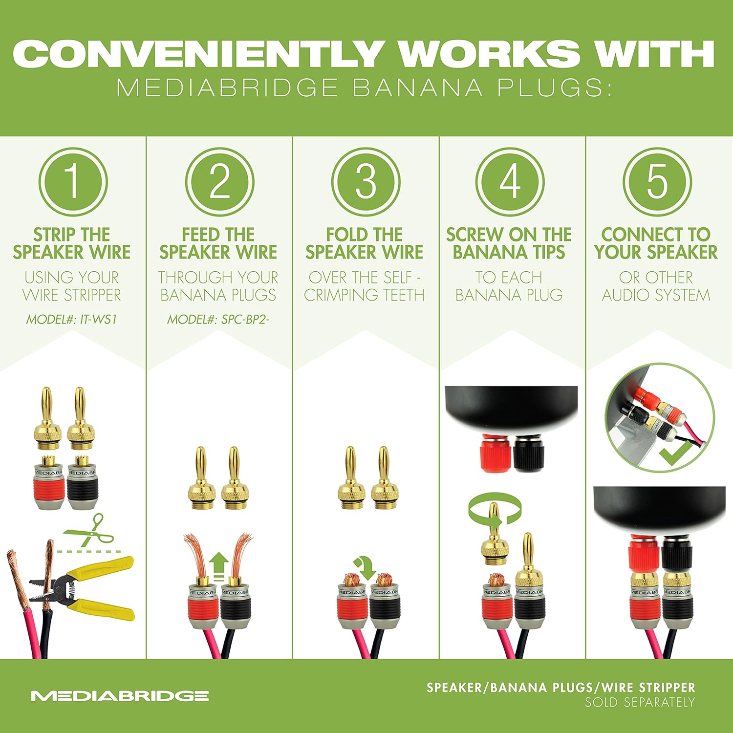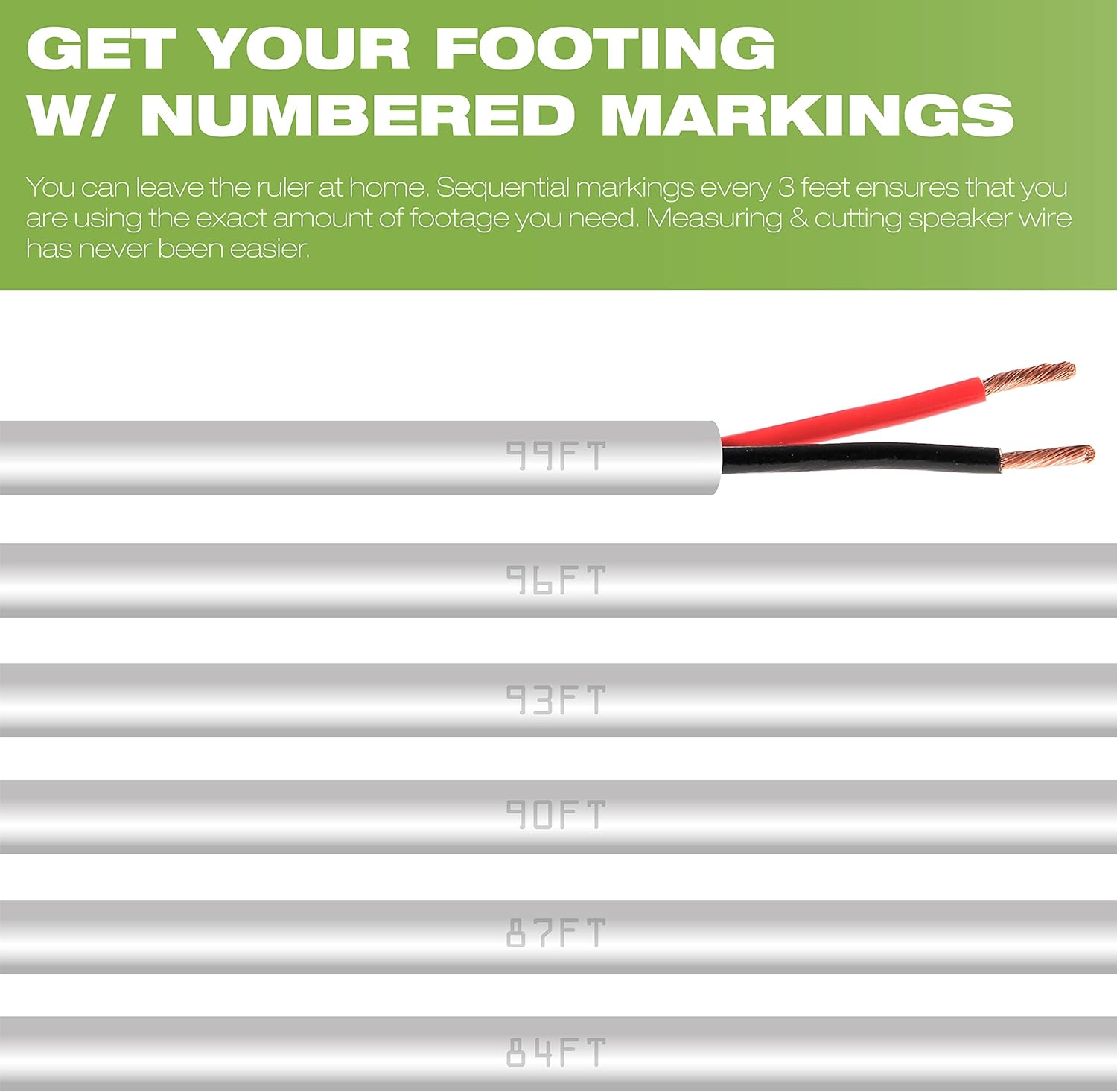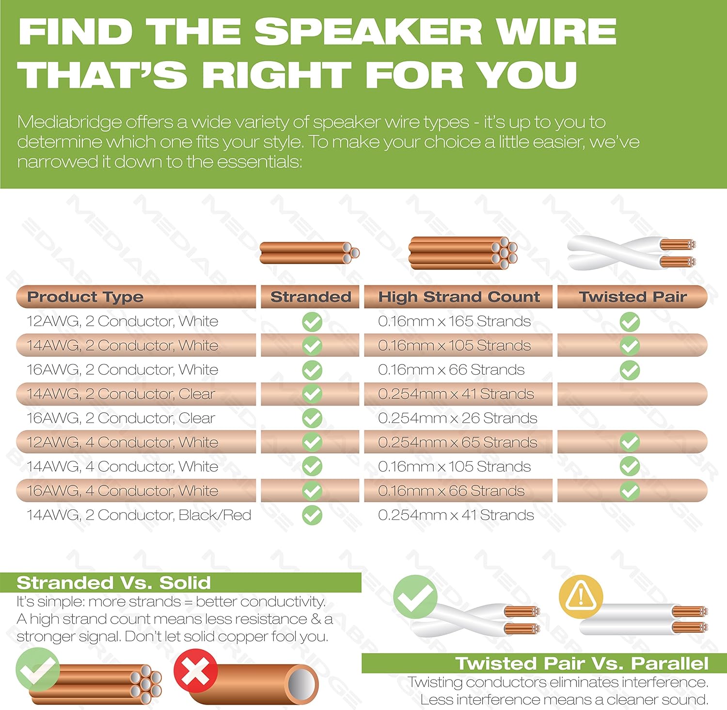 This 2-conductor speaker wire from Mediabridge lets you easily connect your speakers to amplifiers or receivers. High-strand count oxygen free copper conductors are color-coded to distinguish left/right for matching polarity making this speaker wire ideal for custom installs. This wire is ETL Listed & CL2 Rated which means it is certified for in-wall use. Easily use this wire with banana plugs, spade tips or bent pin applications. It comes wrapped around a hard spool that allows for convenient dispensing, measuring, cutting & storing. A tough, yet flexible insulated jacket around the wire helps to achieve high-quality undistorted sound from your audio equipment. Sequential markings printed directly on the jacket at 3FT intervals give users an accurate & worry-free setup. It’s great for in-home, automotive, auditorium, school, church or business settings. Every do-it-yourself speaker project should start with Mediabridge speaker wires.