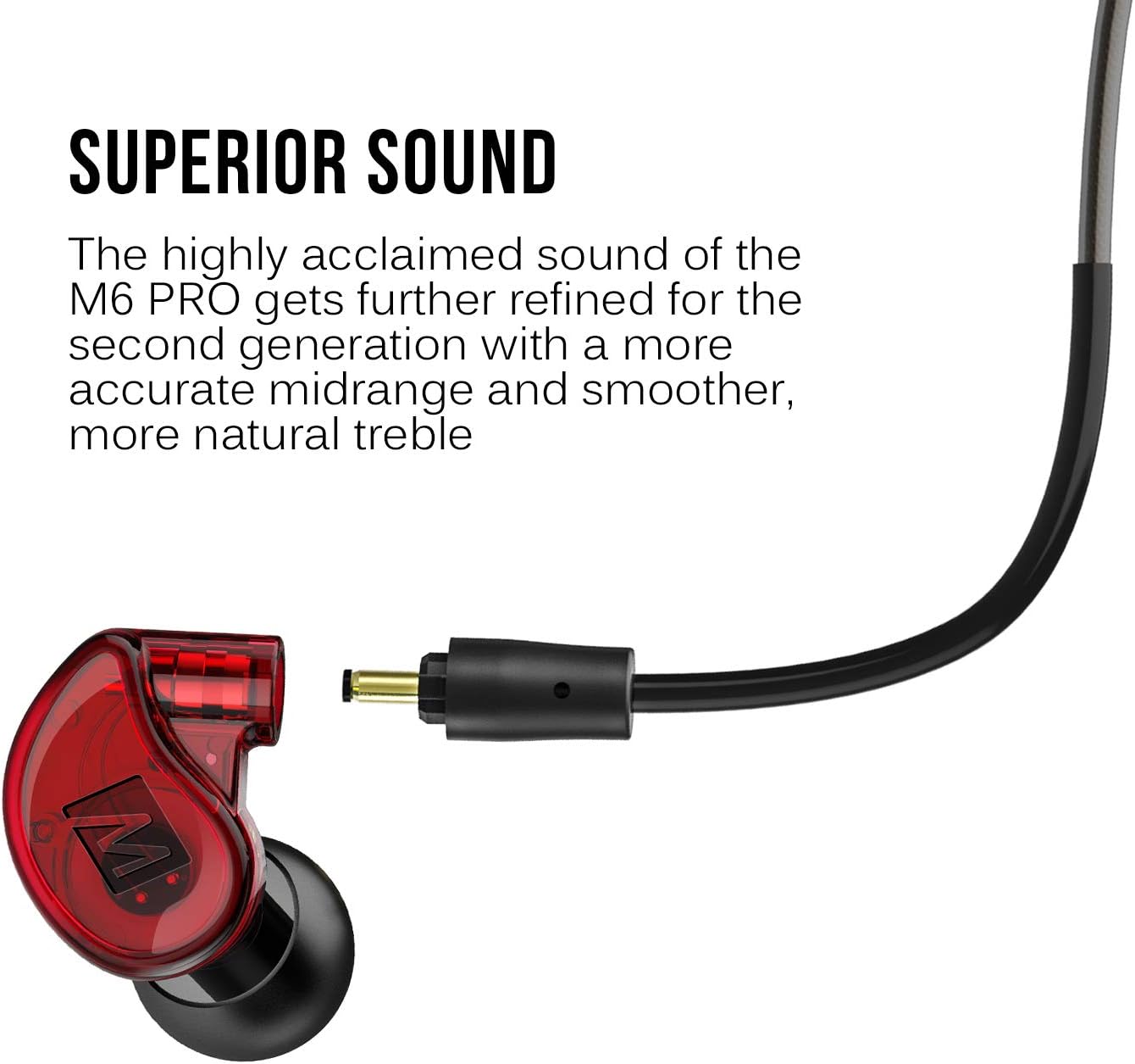 MADE FOR MUSIC: 2nd-generation M6 Pro in-ear monitors utilize a 5um driver diaphragm and aluminum voice coil to produce more precise movement than conventional drivers, delivering clear, full-range audio with more accurate mids and smoother highs