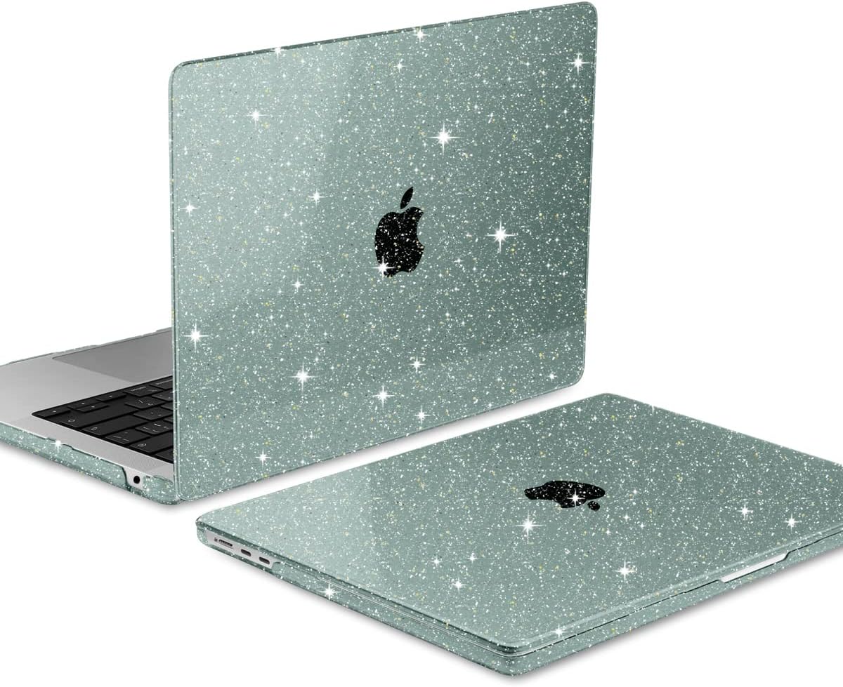 MEEgoodo Glitter Case for M3 MacBook Air 13.6 inch Case,Fit Model A3113 A2681 with M3 M2, Laptop Hard Shell Cases with Keyboard Cover & Camera Cover Compatible with 13.6″ MacBook Air, Star Green