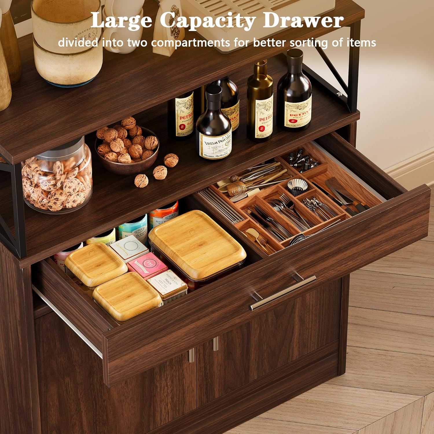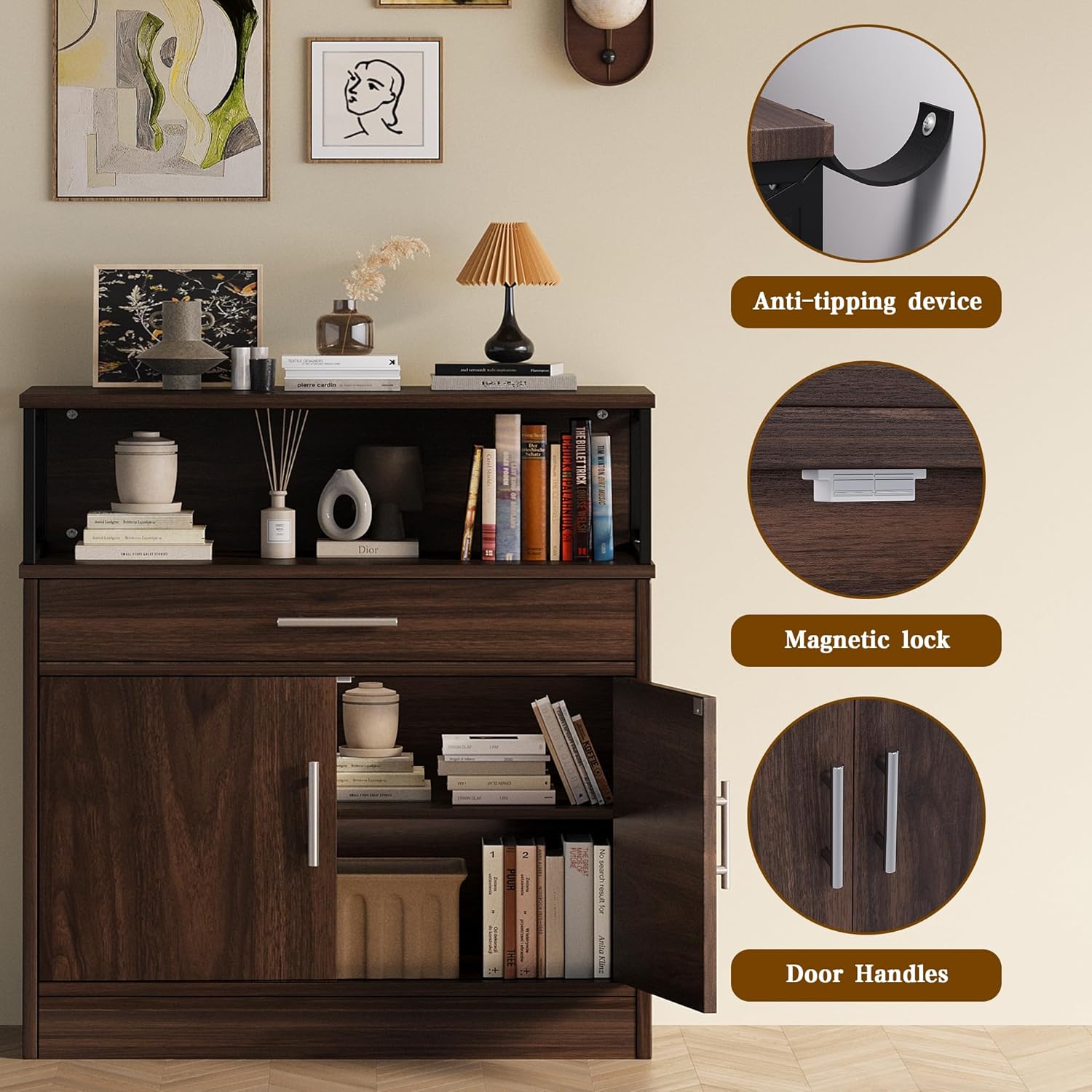 Meilocar Buffet Cabinet, Coffee Bar Cabinet, Sideboard with Storage and Drawer, Farmhouse Storage Cabinet, Wood Kitchen Cabinet for Living Room, Dining Room, Hallway, Dark Brown