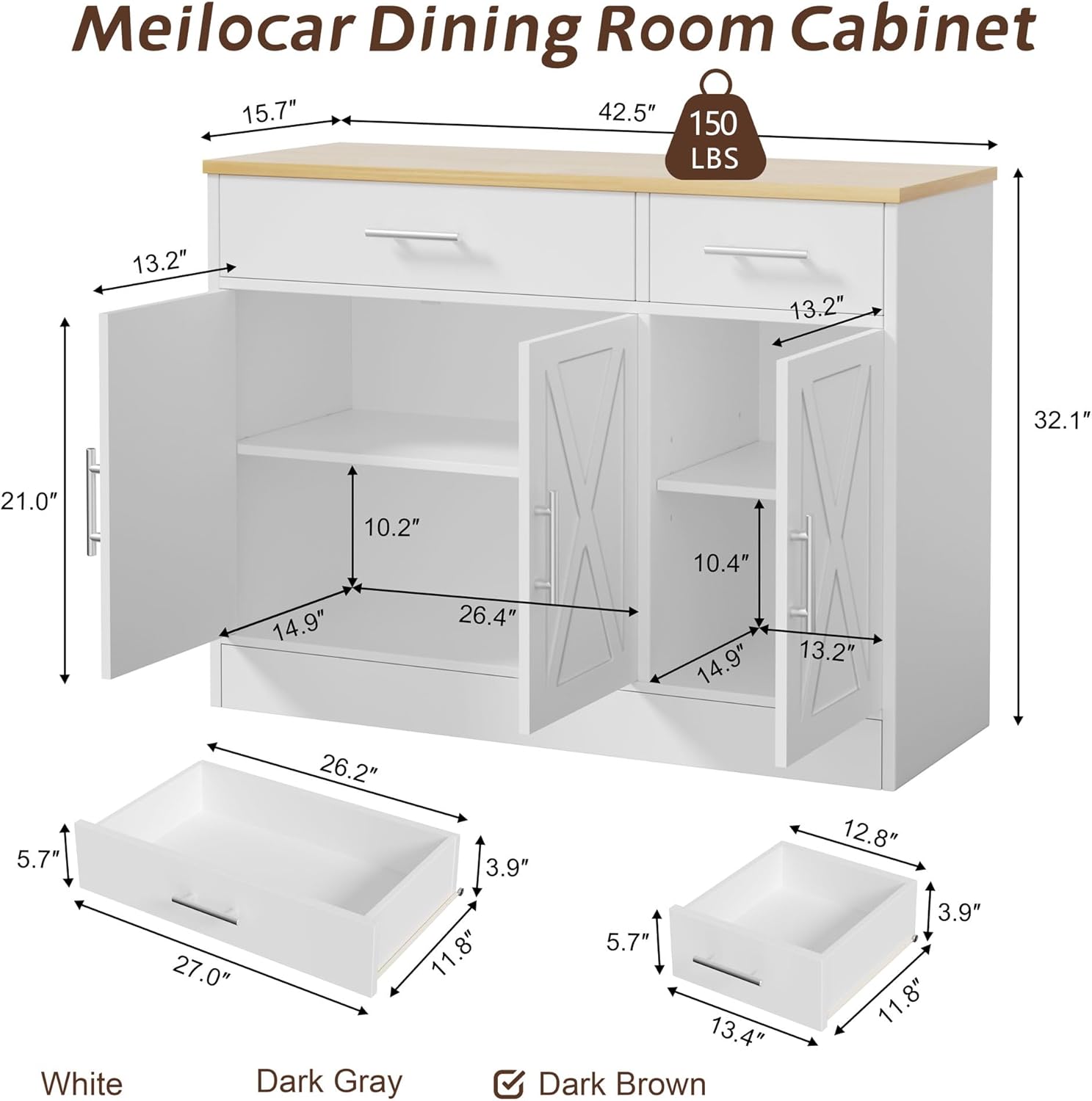[Ample Storage Space] This kitchen cabinet measures 42.5″ x 15.7″ x 32.1″. Featured 1 large door cabinet with 1 adjustable shelf, 1 seperated drawer and 1 open storage space for storing seasoner, sundries, coffee beans, dishes and so on. The drawers measure: 26.2″ x 11.8″ x 3.9″ and 12.8″ x 11.8″ x 3.9″. And the spacious tabletop can place coffee makers, microwave ovens, toasters, bread maker machines, etc.