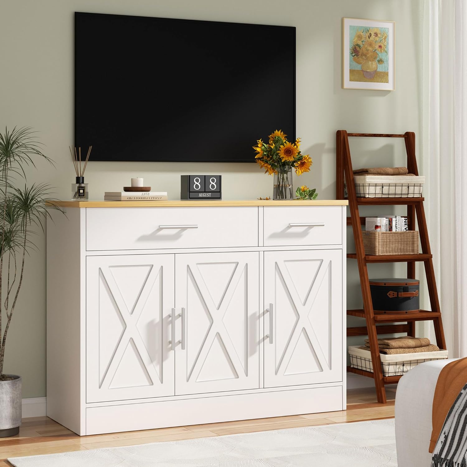[Multifunctional Usages] Constructed with MDF board and safe Scratch-resistant coating, this cabinet is sturdy for years and has no unpleasant odors. It can serve as a storage cabinet in the living room, a buffet cabinet in the kitchen/dining room and a console cabinet in the hallway.