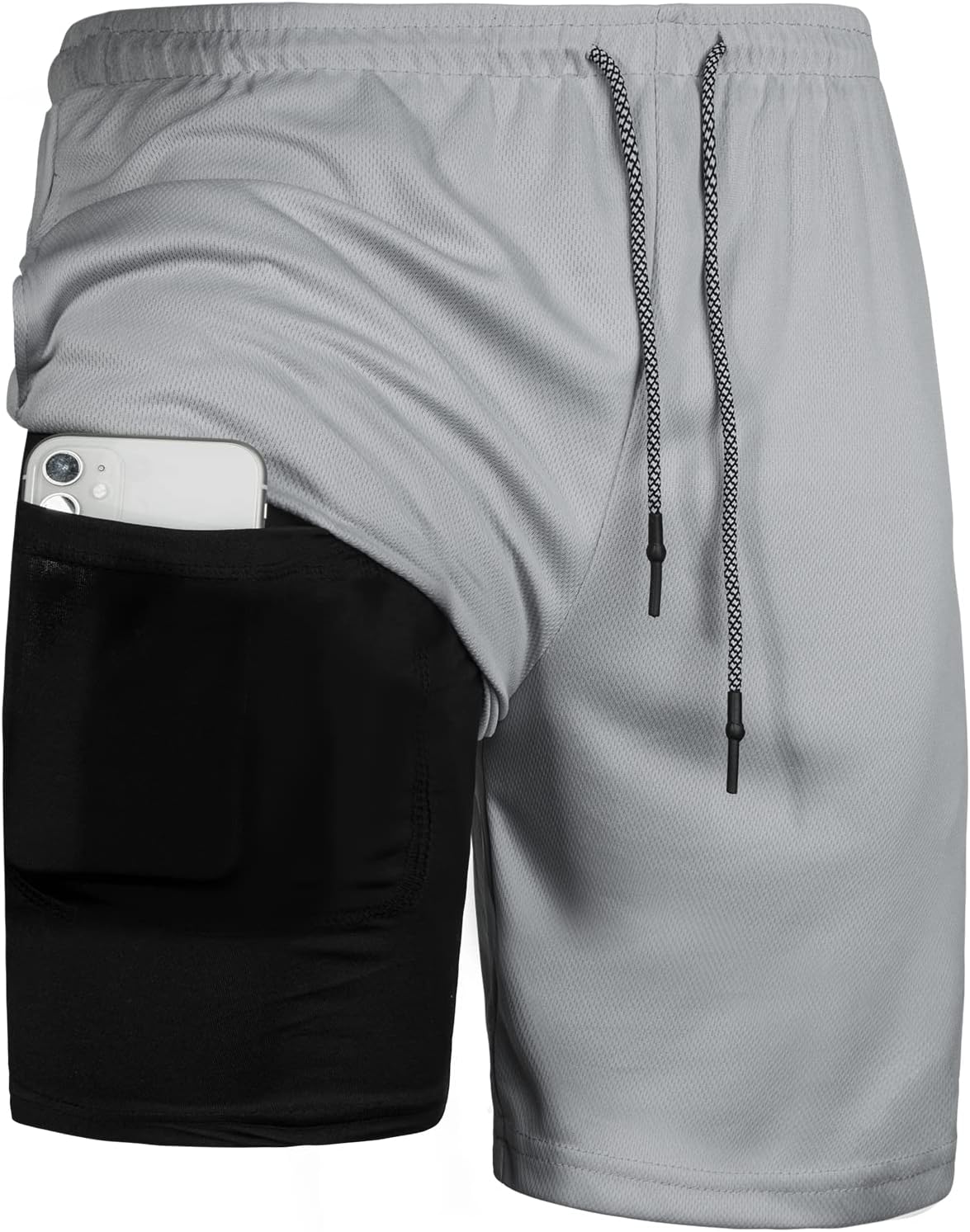 Mens Athletic Shorts, 2-in-1 Gym Workout Shorts for Men Mesh Quick Dry Yoga Training Running Shorts with Pockets