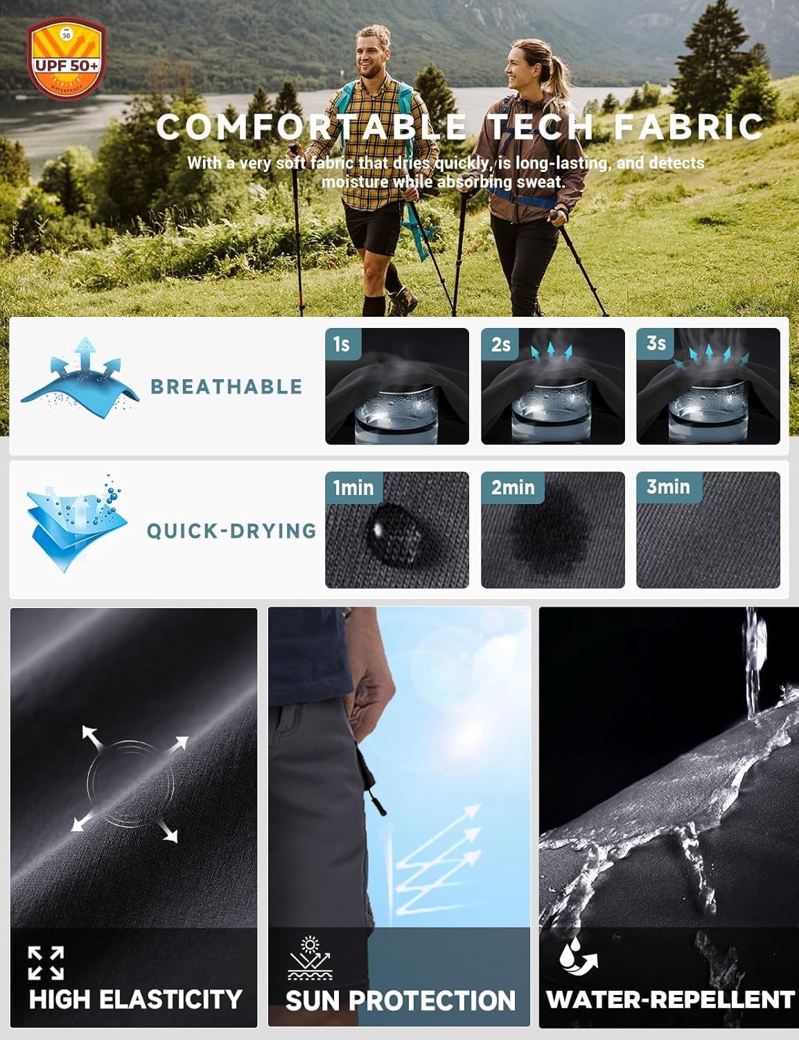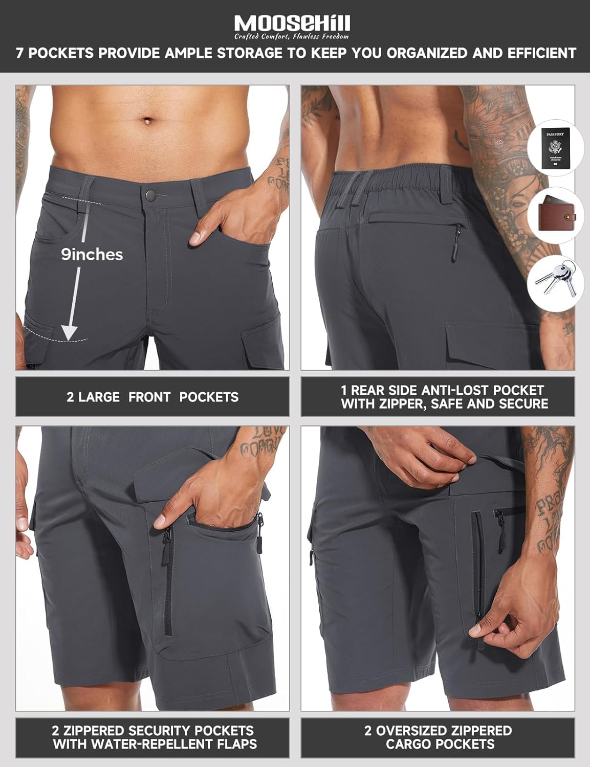 Men’s Hiking Cargo Shorts with 7 Pockets Quick Dry Casual Work