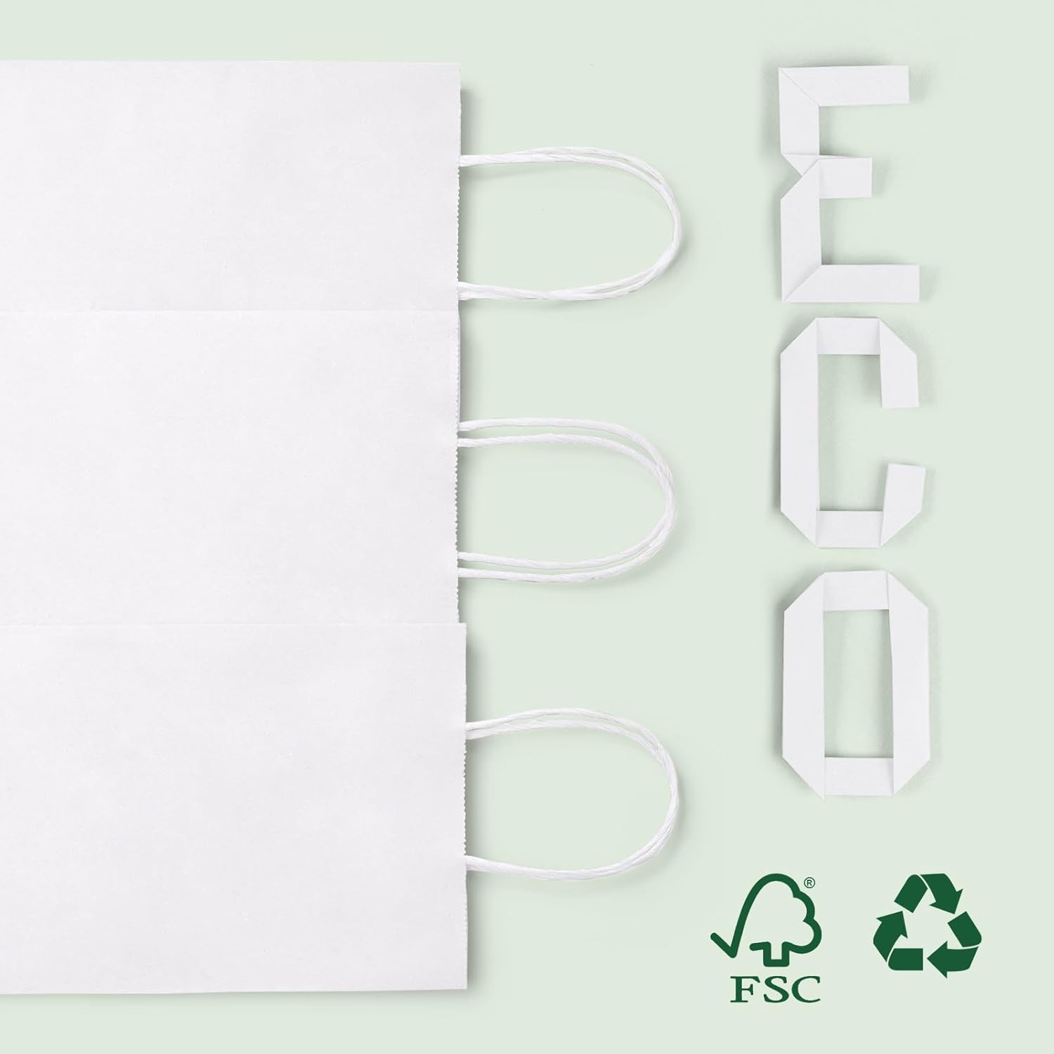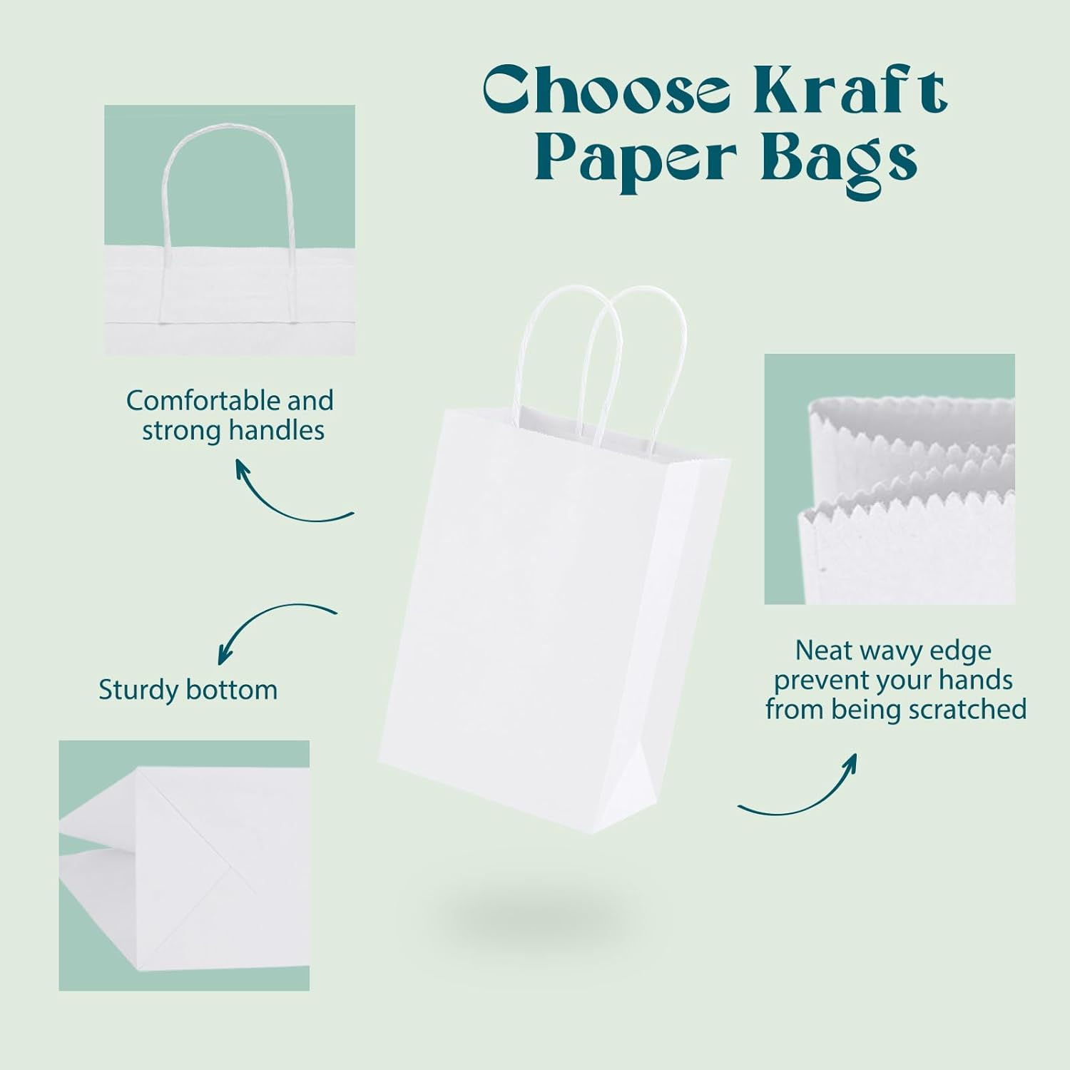 MESHA Paper Gift Bags 5.25×3.75×8 50Pcs White Paper Bags for Small Business,Small Paper Gift Bags with Handles Bulk,Birthday Wedding Party Favor Bags