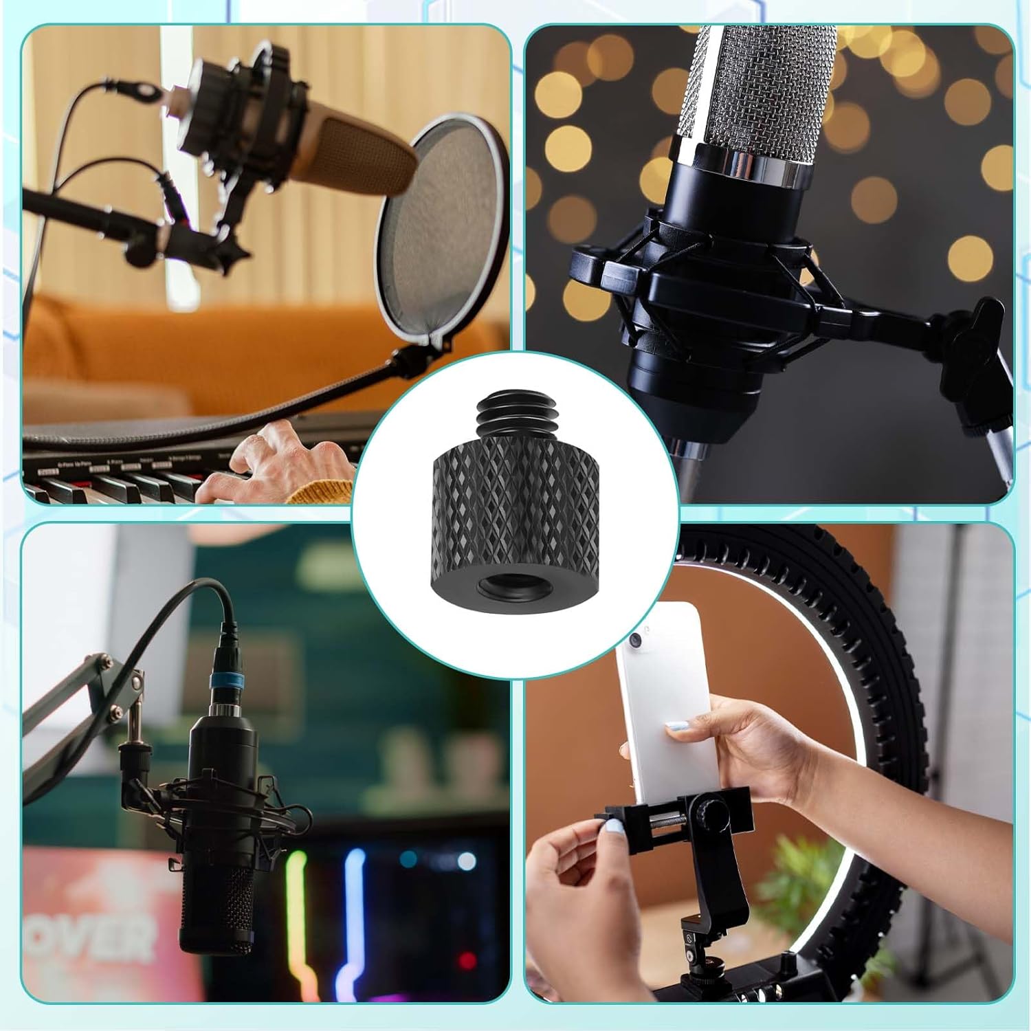 PACKING LIST:You will receive 4 of microphone stand adapter, including 2 of 1/4 to 3/8 tripod adapter and 2 of 3/8 to 1/4 socket adapter. Compatible with a variety of microphone stands, saving time and effort