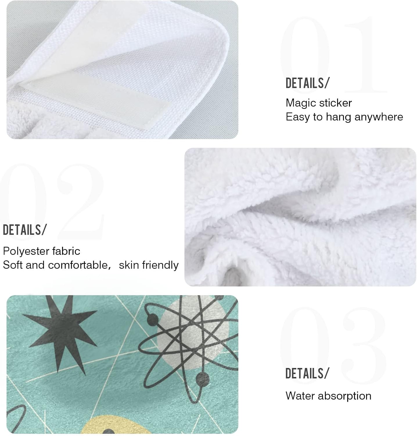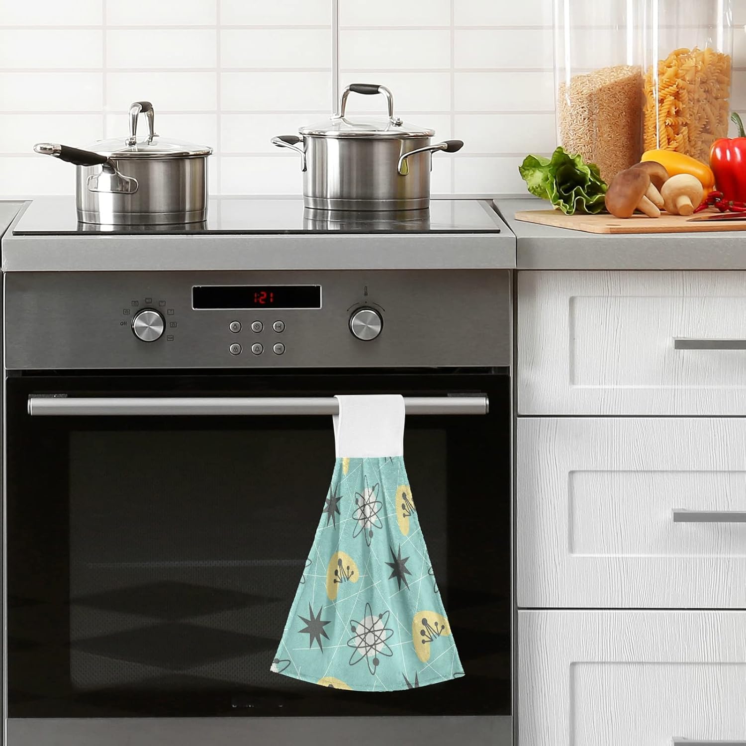 Mid-Century Modern Pattern Hanging Kitchen Towels 2 Pieces 1950s Retro Style Atomic Hand Bath Yowels Dish Towels Tie Towel Tea Towels for Bathroom Farmhous Housewarming Home