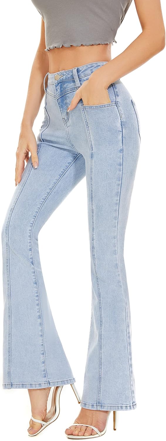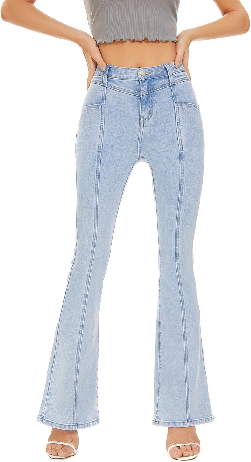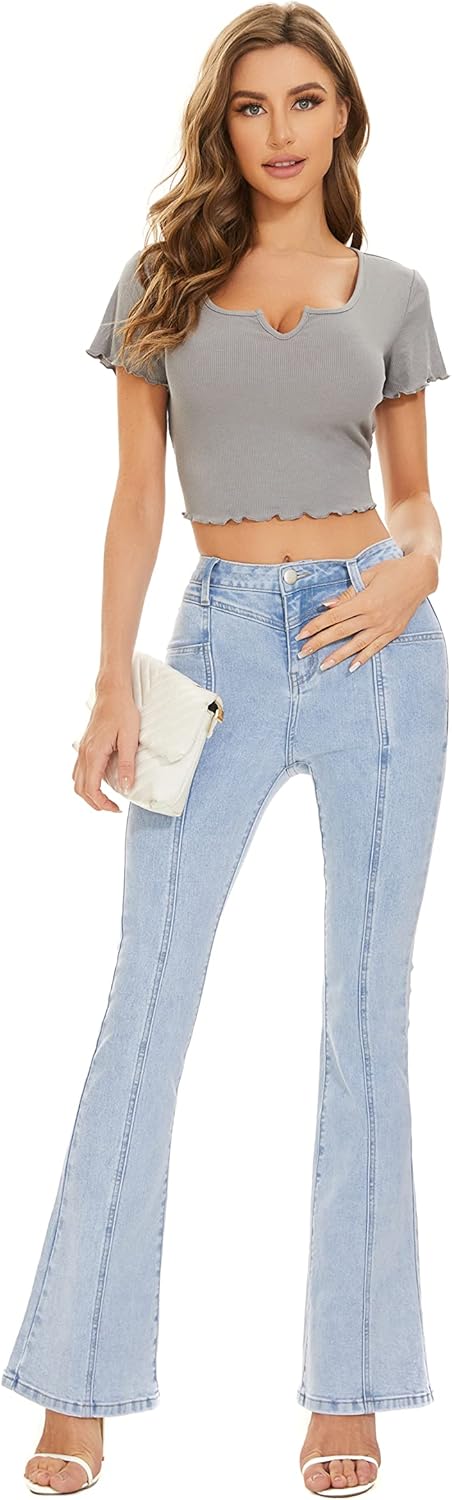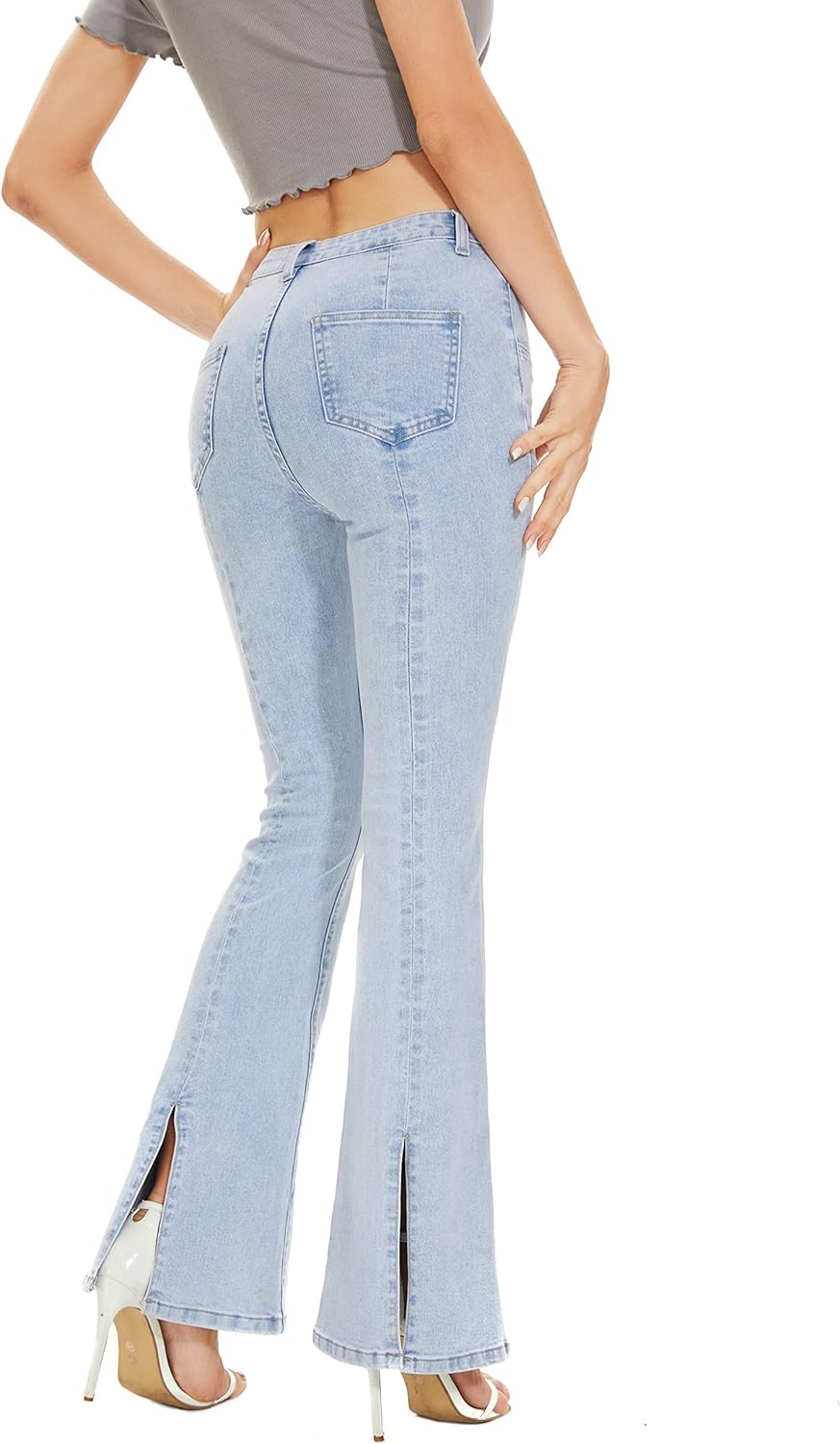 Mid Rise Flare Jeans for Women Split Leg Back Stretchy Curvy Bell Bottom Denim Pants