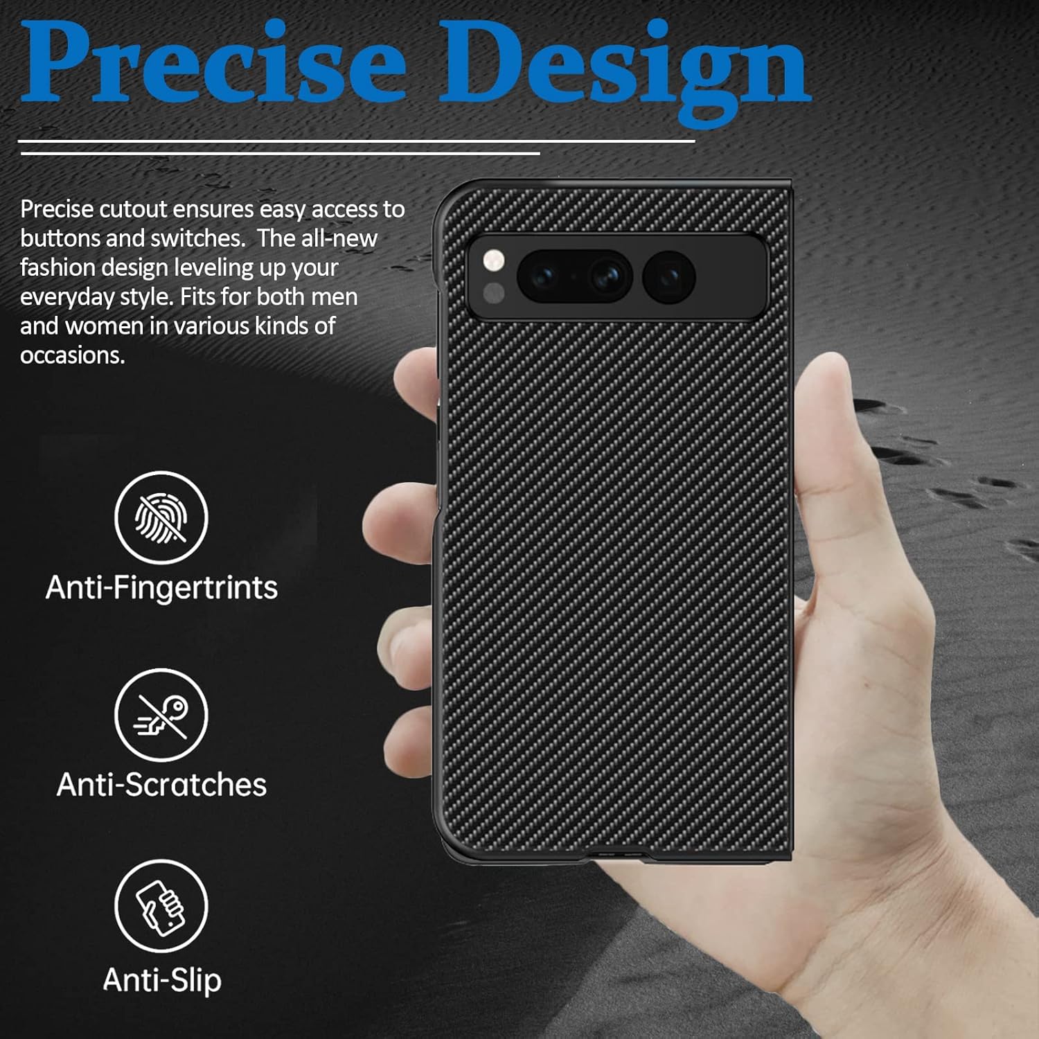 【Premium Material】Perfect selection of carbon fiber pattern on the back cover of the Pixel Fold case. Delicate touch sensitivity, skin-friendly and durable. Spider’s web-like texture on inner back designed for heat dissipation. Slim back panel shock absorption.