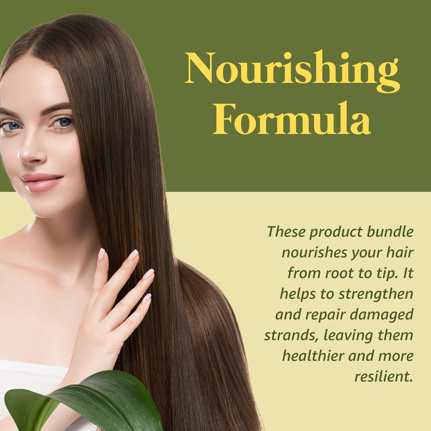 👌 NOURISHING FORMULA. These product bundle nourishes your hair from root to tip. It helps to strengthen and repair damaged strands, leaving them healthier and more resilient.