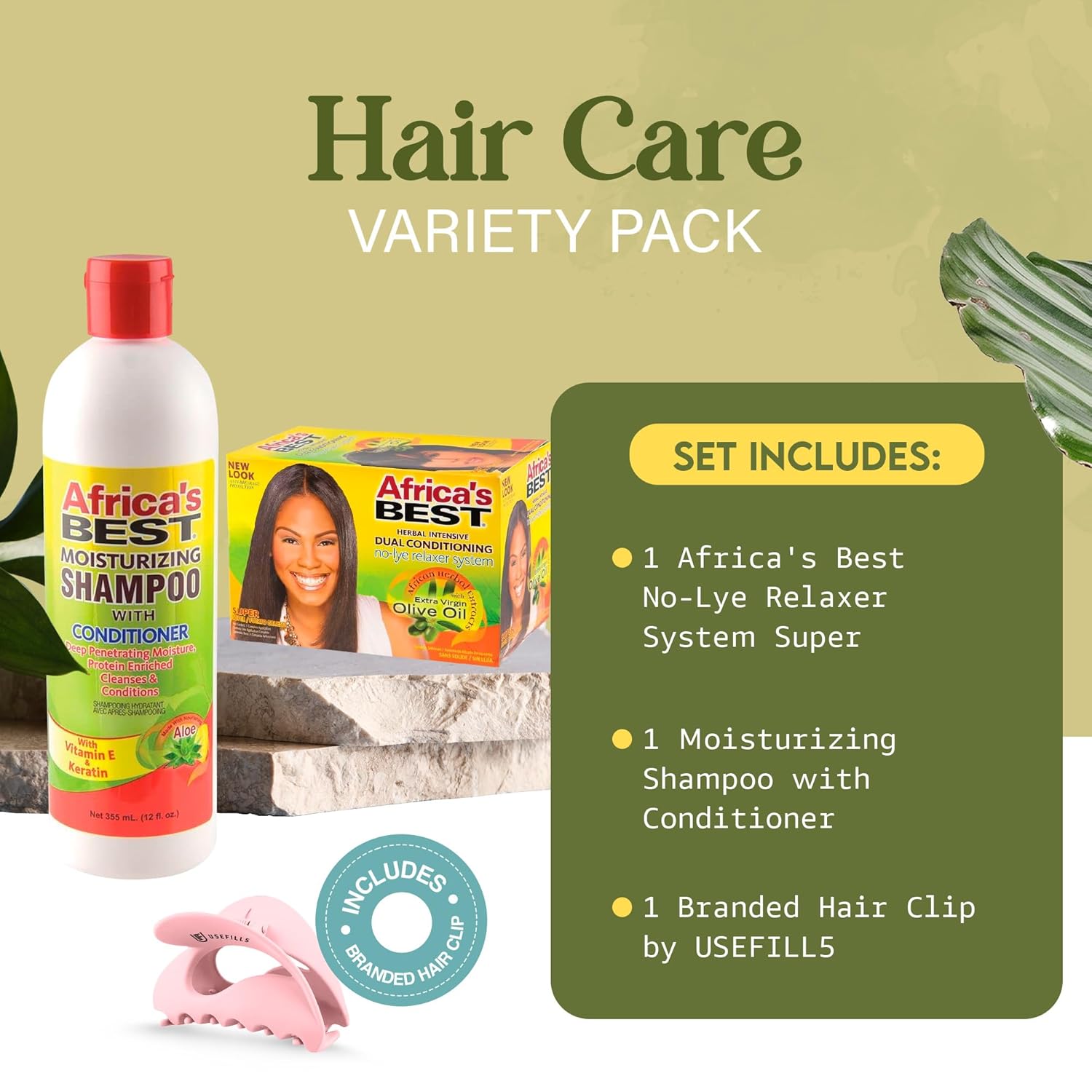 👩 HAIR CARE VARIETY PACK Set Includes 1 Africa’s Best No-Lye Relaxer System Super | 1 Africa’s Best Moisturizing Shampoo with Conditioner | 1 Branded Hair Clip by USEFILL5