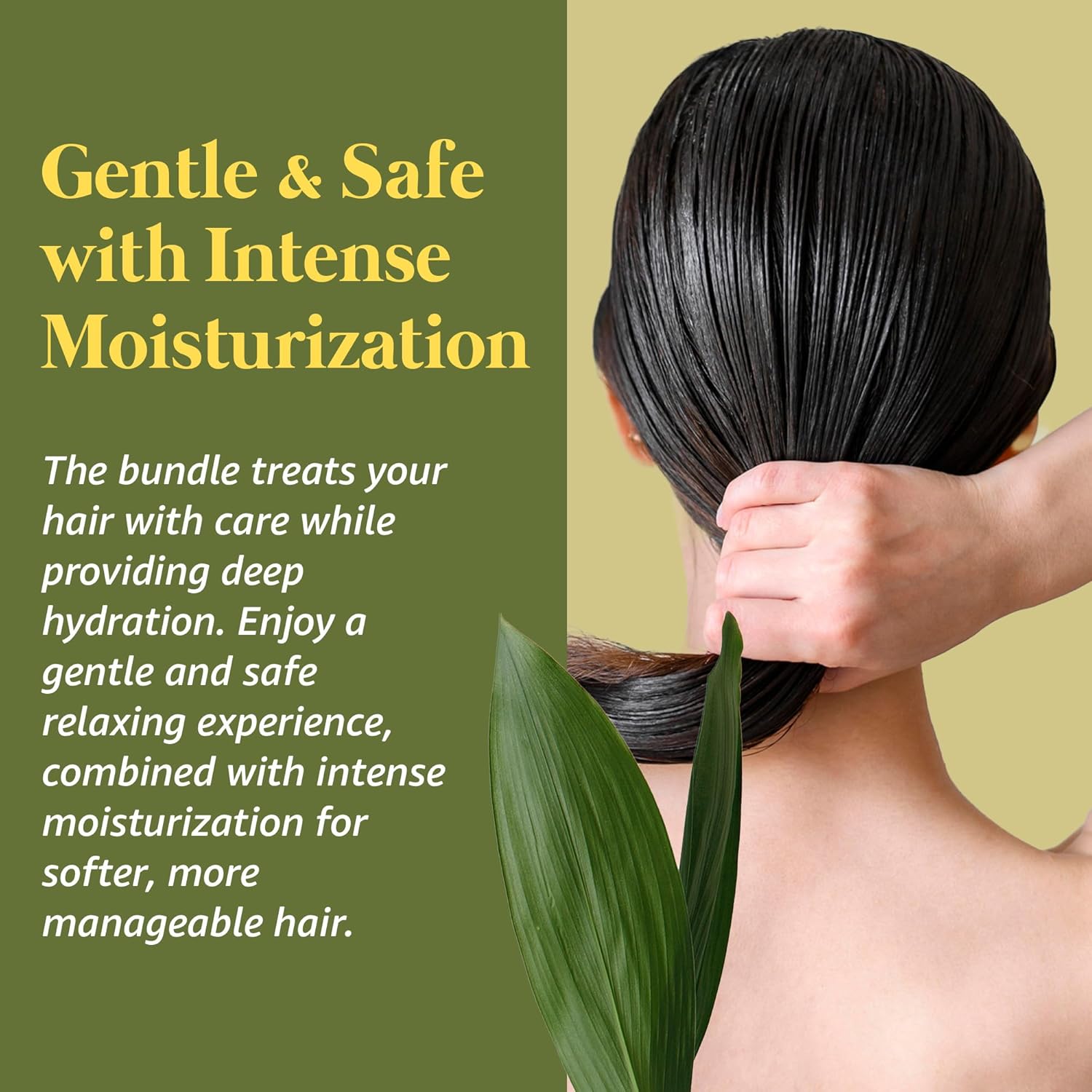 😍 GENTLE AND SAFE WITH INTENSE MOISTURIZATION. The bundle treats your hair with care while providing deep hydration. Enjoy a gentle and safe relaxing experience, combined with intense moisturization for softer, more manageable hair.