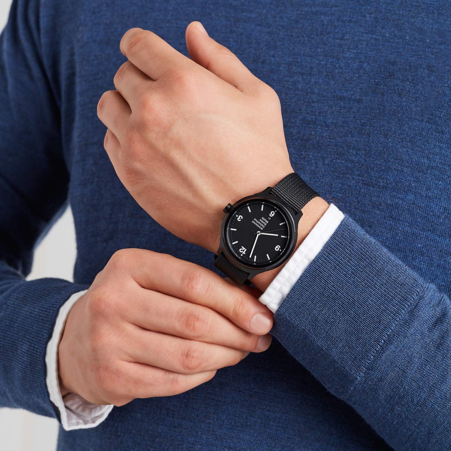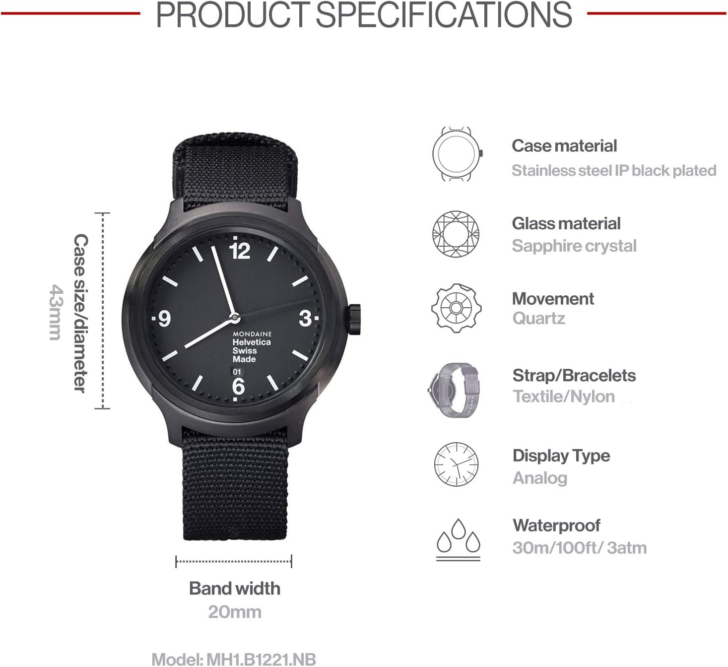 Mondaine – Helvetica MH1.B1221.NB – Mens Watch 43mm – Wrist Watch Date Black Nylon Strap 30m Waterproof Sapphire Crystal Stainless Steel case – Mens Watches – Made in Switzerland
