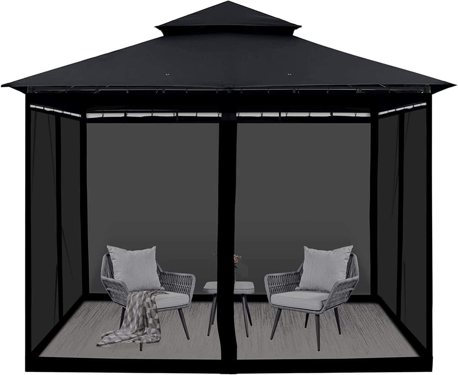 Mosquito Net for Outdoor Patio and Garden, Screen House for Camping and Deck, Gazebo Screenroom, Zippered Mesh Sidewalls for 10x 10′ Gazebo (Dark Black)