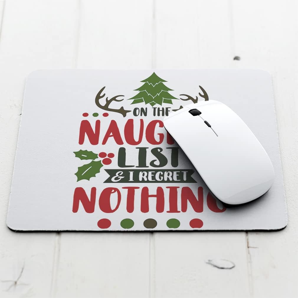 Mothers Day Mouse Pad Christmas Mistletoe On The Naughty List and I Regret Nothing Neoprene Office Supplies & Gaming Computer Desk Accessories Square Shape Design Only