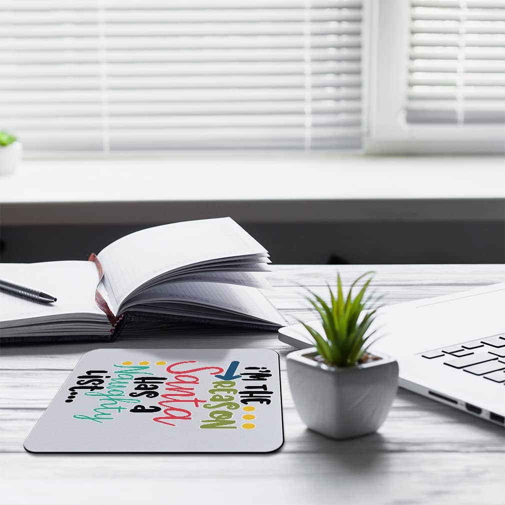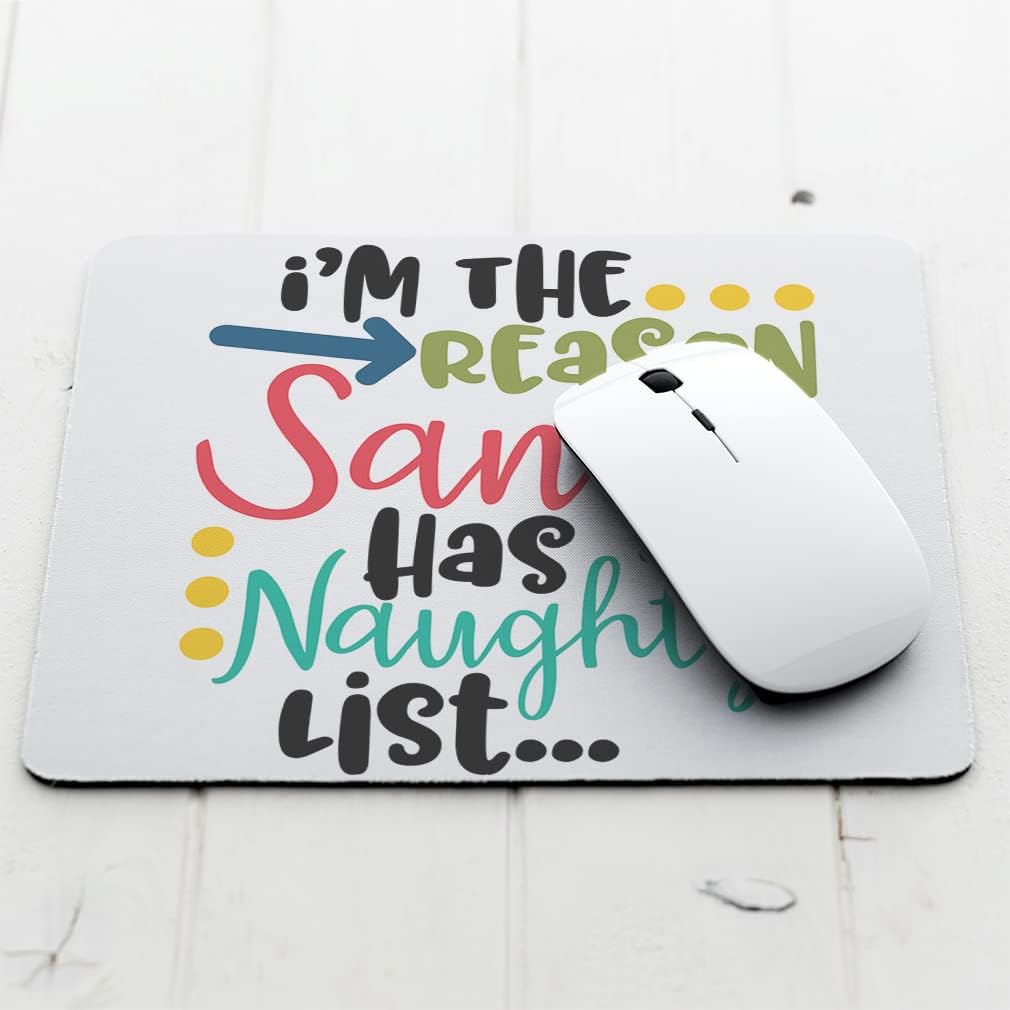 Mothers Day Mouse Pad Christmas Santa Cap Reason Santa Has A Naughty List Neoprene Office Supplies & Gaming Computer Desk Accessories Square Shape Design Only