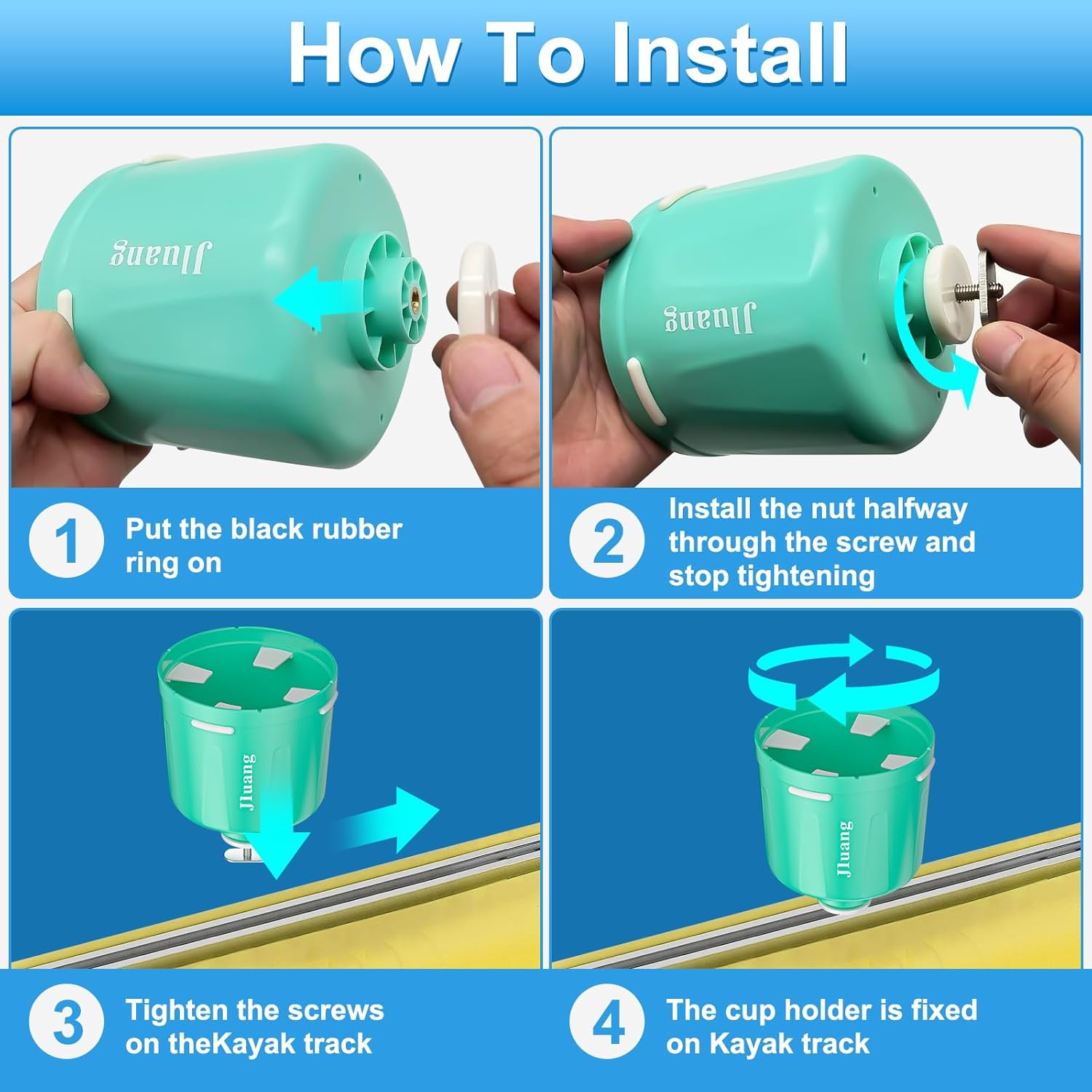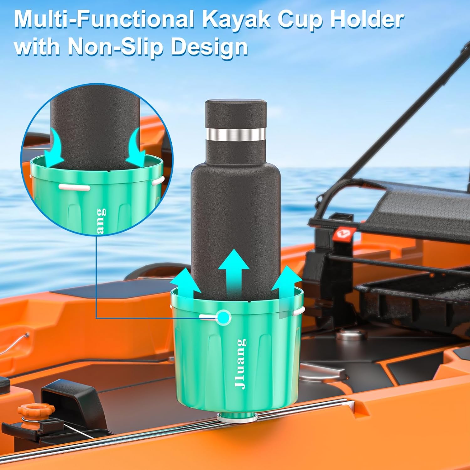 1.Multi functional cup holder: Can hold water cups, beverages, bait, mobile phones, etc. Easy installation, simple installation and disassembly, sturdy, suitable for all kayak tracks