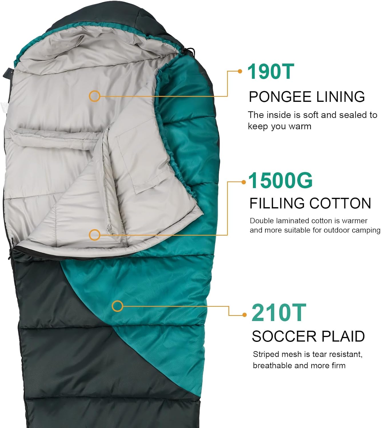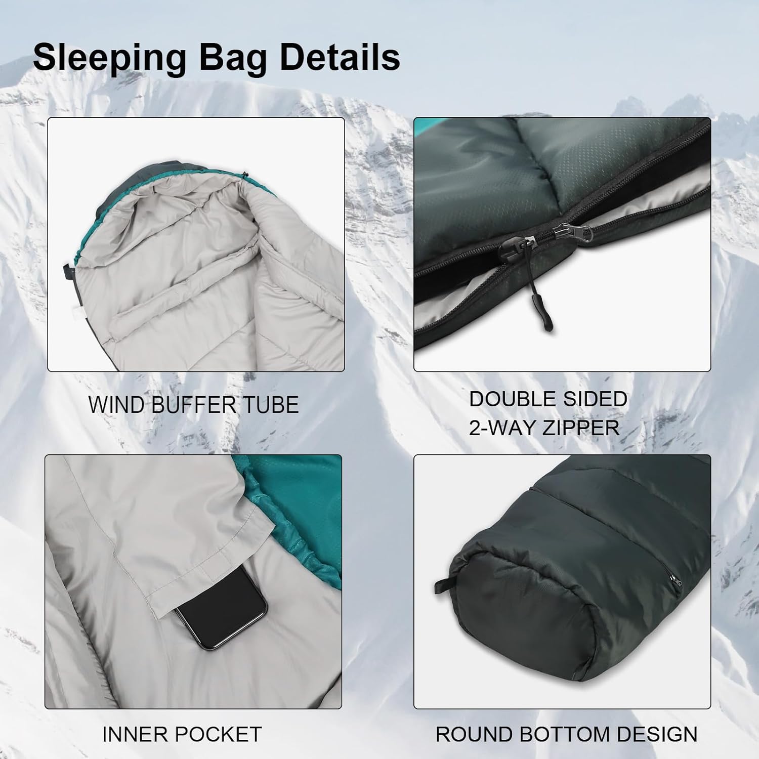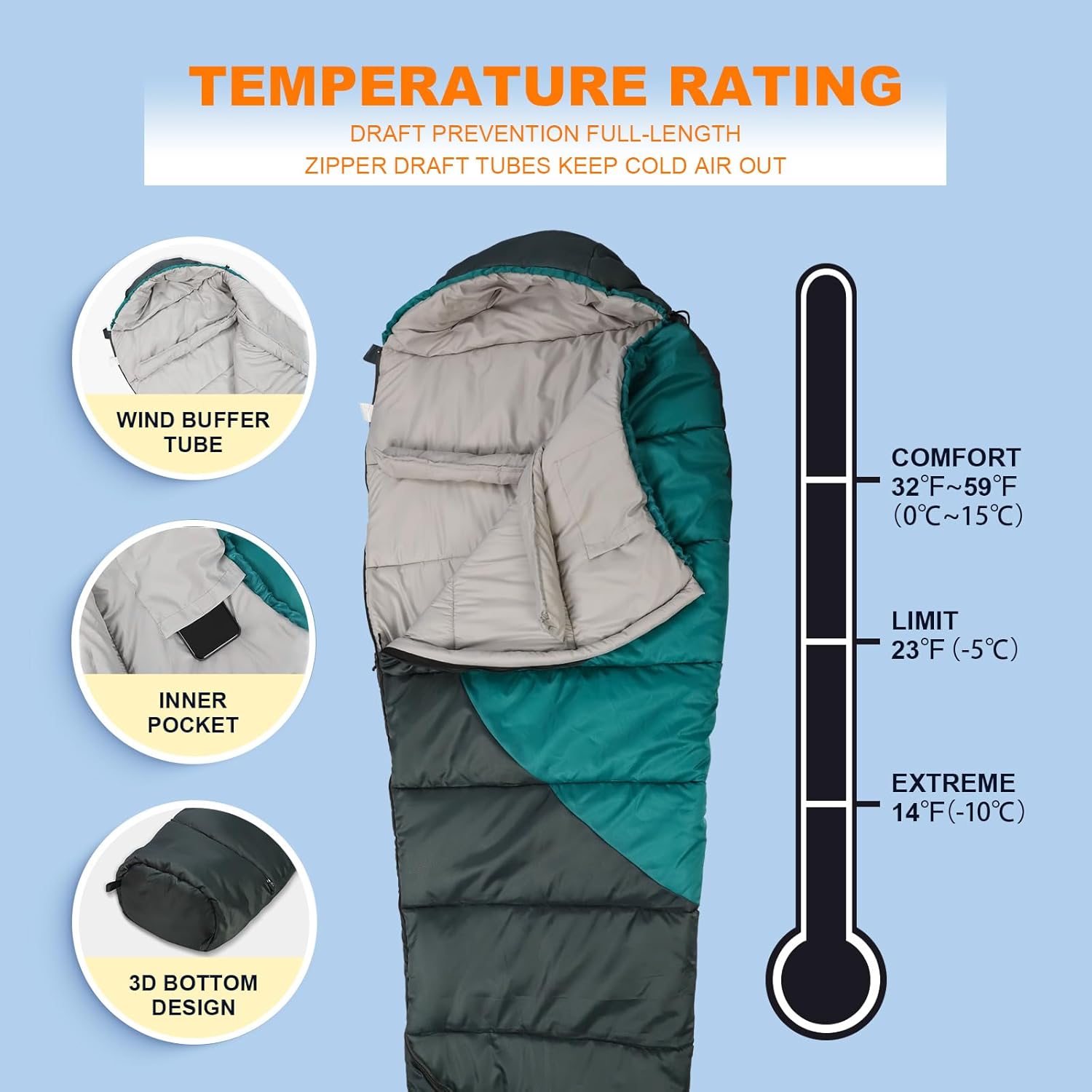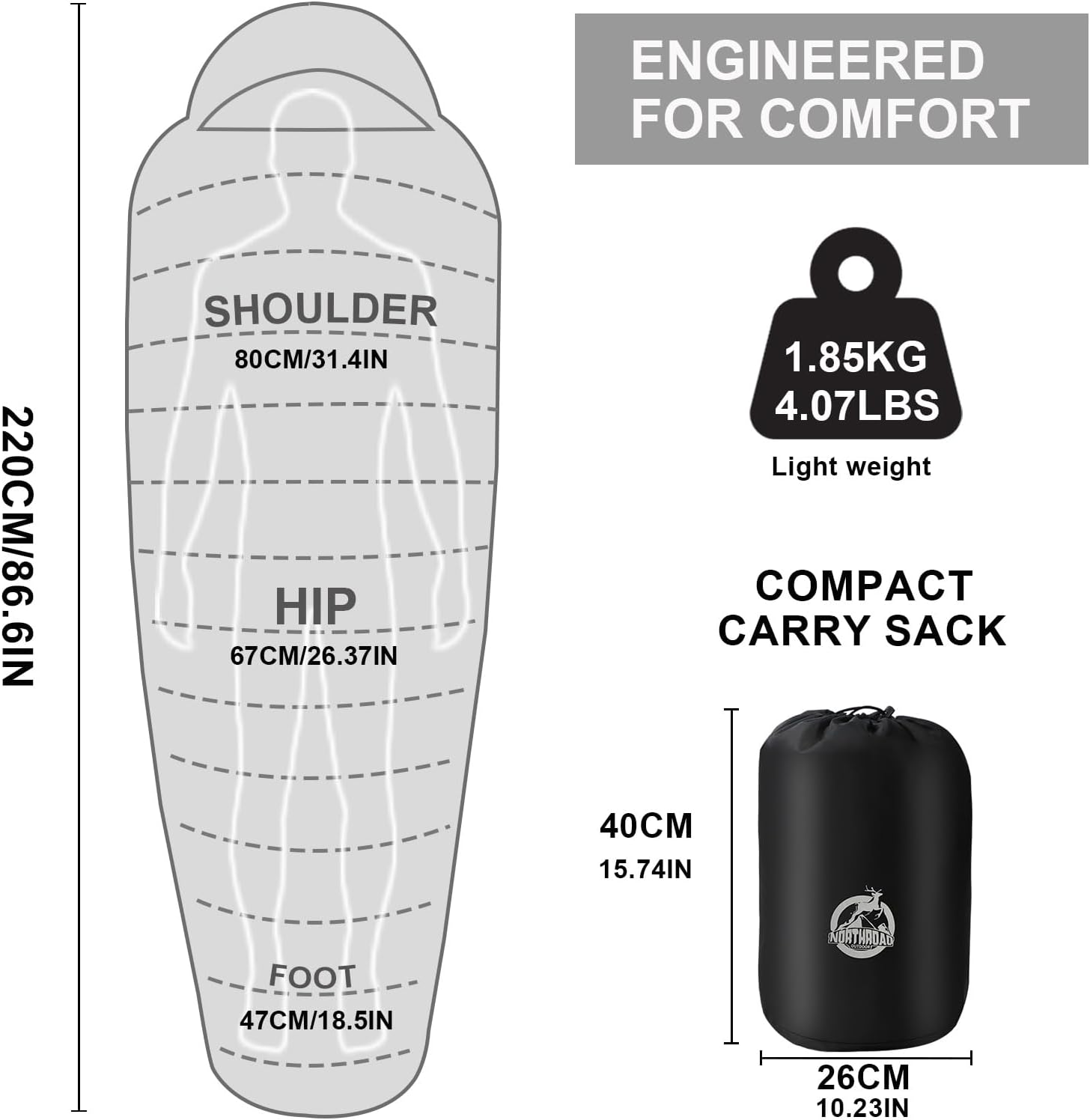 Northroad Mummy Sleeping Bag 14-59 β, 3 Season Warm & Cool Weather, Winter Spring Fall Lightweight Waterproof Washable Sleeping Bag for Camping Hiking Travel Hunting